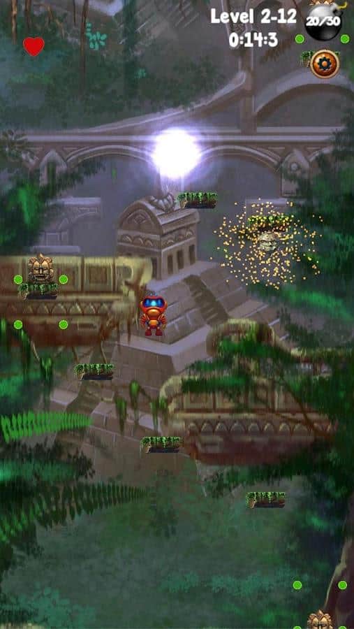 Lost Jumper – джампер на андроид, в котором вы будете помогать пилоту потерпевшему крушение самолета выбраться из джунглей. В этой игре вашей главной задачей будет взрывать бомбы рядом с героем, чтобы изменить его траекторию прыжка. Эта игра потребует от вас полной концентрации и сноровки, ведь поначалу вам может показаться, что эта задача трудновыполнимая, ведь вам предстоит контролировать передвижение своего героя по платформам, обходить всех врагов и стараться забраться как можно выше. Попробуйте пройти эту игру и поставить свой рекорд, заработав как можно больше баллов.