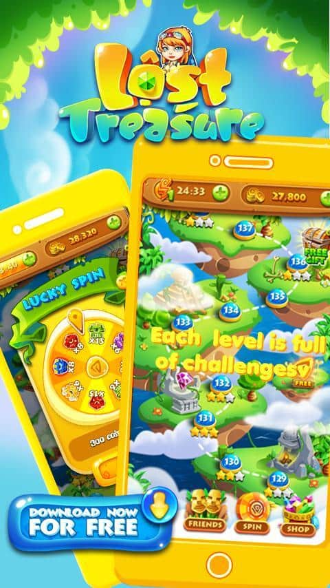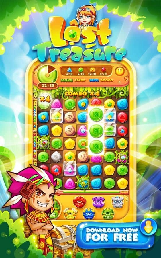 Lost Treasure - Приключенческая игра на андроид по типу три в ряд. Вам предстоит найти потерянное сокровище, которое было похоронено в сельве, где живет один древний мудрец. Вам предстоит разбивать игровые кирпичи, собирать разнообразные тотемы, и проходить уровни, которые приготовил для вас мудрец. В игре великолепная современная графика, а уровни выполнены в красивом стиле с различными головоломками.
