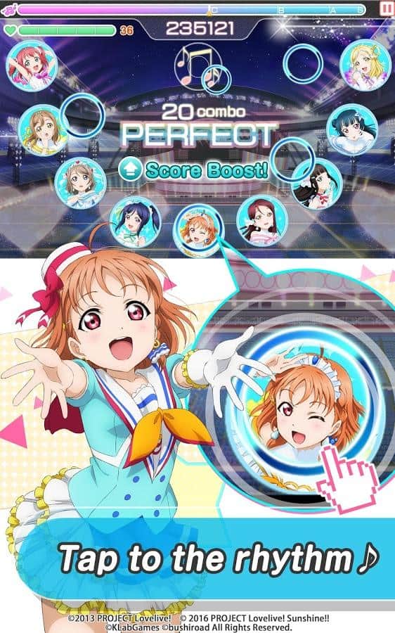 LoveLive! School idol festival - Одна из самых популярных японских музыкальных игр. В этой игре вам предлагают руководить одной школьной музыкальной группой. Ваша задача будет заключаться в том, что бы привести этих школьников к мировой славе. Управляйте, приглашайте новых участников или избавляйтесь от старых. Так же не забывайте учить молодую группу музыкальному искусству.