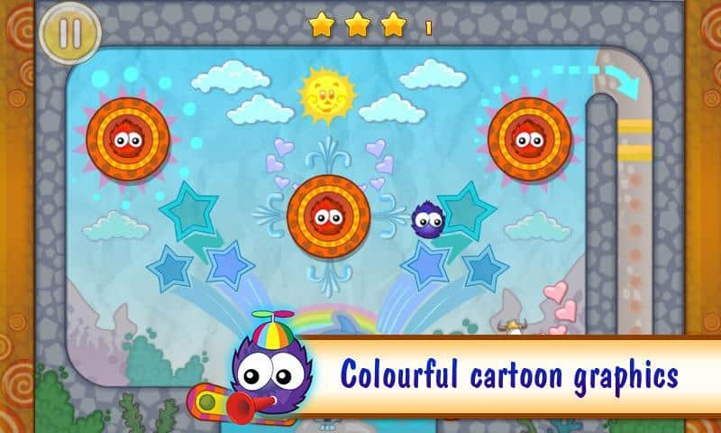 Лови Конфету - в яркой мультяшной аркаде помогите маленькому сиреневому пушистику с хвостиком добраться до сладкой конфетки - ведь сладости любите не только вы ;). в игре 6 миров и 14 уровней в каждом! Чтобы получить заветную сладость у пушистика есть цепкий хвостик, которым он цепляется за разные поверхности, прыгает, отодвигает предметы и карабкается вверх. Как только достигает цели - так уровень и пройден! Но важно сделать как можно меньше движений для достижения цели - тогда вы получите лучшую оценку за прохождение уровня! Локации также радуют разнообразием - пляж с пальмами и ярким солнцем, лабиринты фабрики механизмов, городские улицы и даже футбольное поле!