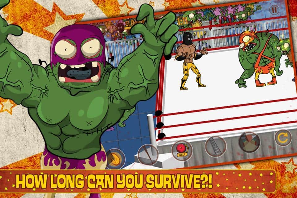 Lucha Zombie – интересный реслинг на андроид, выполненный в мультяшном рисованном стиле. Выбирайте себе персонажа и сражайтесь на ринге в полную силу, выполняйте сокрушающие удары и мощные комбо для победы над зомби.