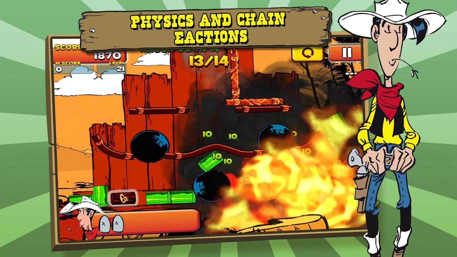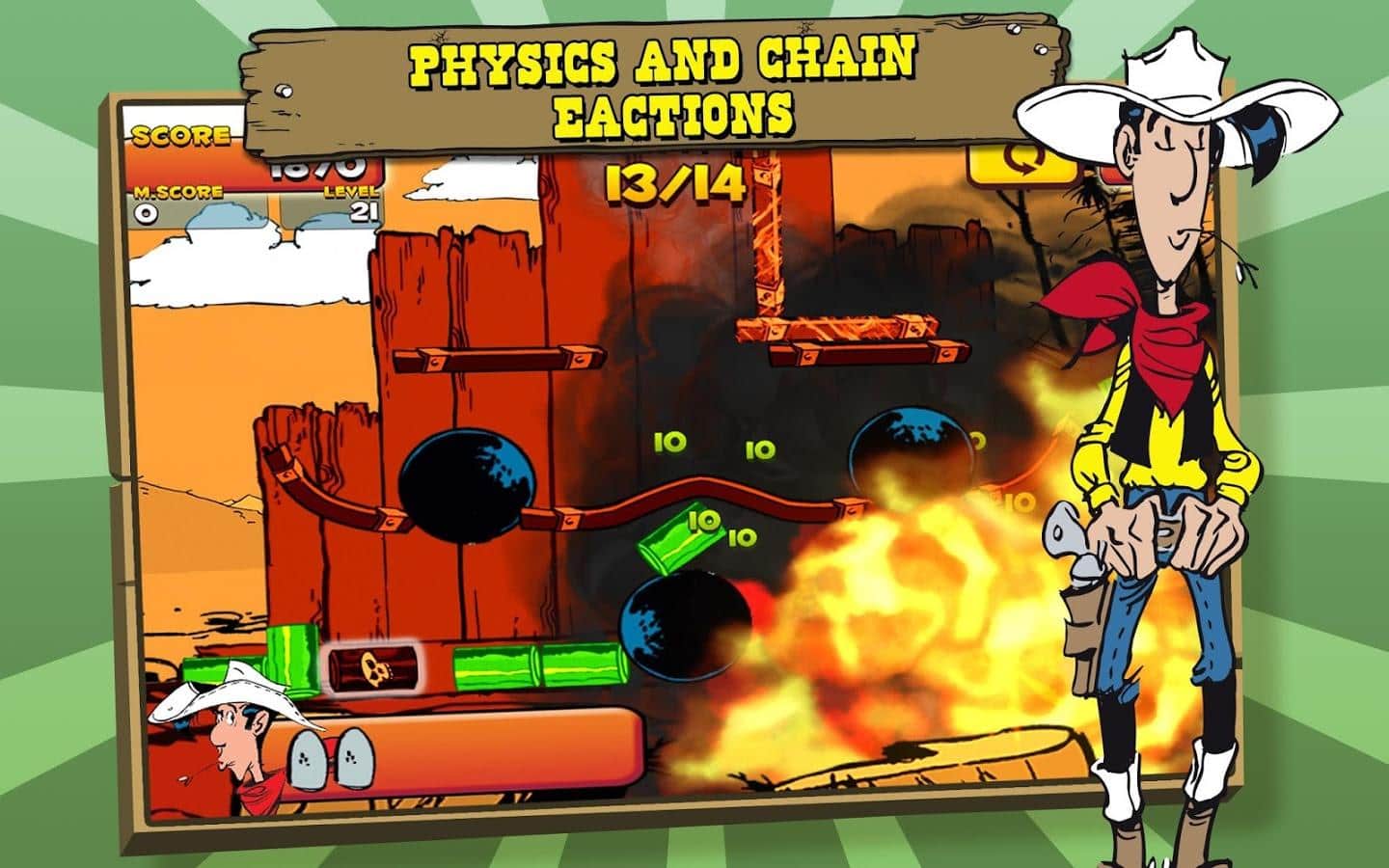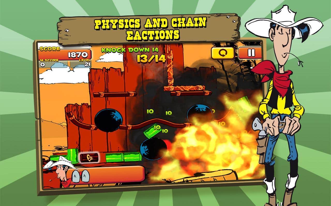 Lucky Luke Shoot & Hit - Докажите, что вы самый лучший стрелок на Западе! Пройдите сотни уровней в этой сложной игре, основанной на физических и цепных реакций. Ваша точность и логика помогут в этой игре! Стреляйте метко и сбивайте все мишени, но следите за своим боезапасом: ведь он ограничен. Великолепная мультяшная графика и приятное музыкальное решение дополнят эту игру.