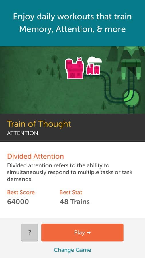 Lumosity - Тренеруйте свою память и внимание. В эту головоломку играют больше 70 миллионов человек со всего мира. Lumosity это своего рода специальная тренировочная программа для вашего мозга. За этой, на первый взгляд, простой игрой, прячется целая наука. В разработке игры брали участие врачи с ученой степенью, со всего мира, которые подсказали, как можно тренировать память, концентрировать внимание, и многое другое. Внутри игры, различной сложности головоломки, решение которых требует не слабой концентрации, внимания, и скорости.