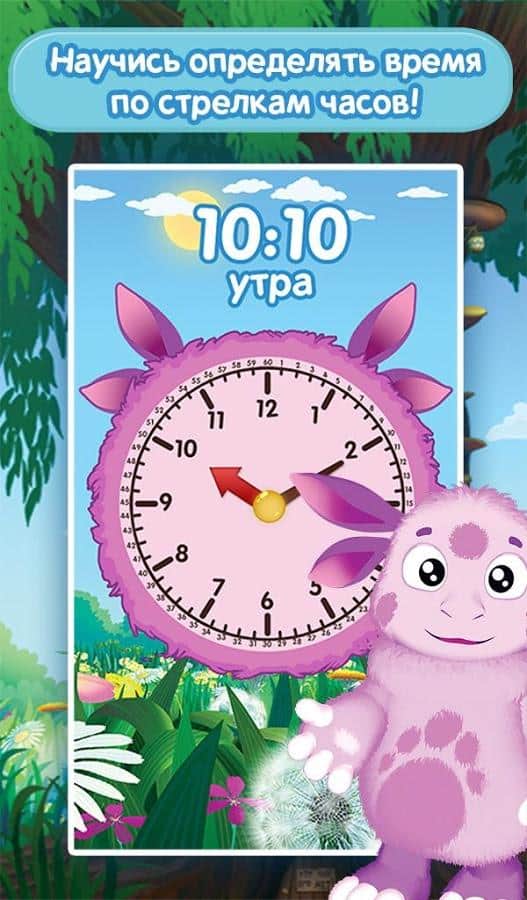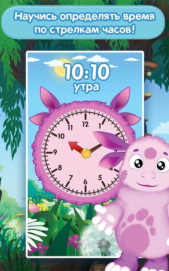 Лунтик: Учим время – игра для детей на андроид, где они вместе с Лунтиком будут изучать циферблат часов и определять по ним время. В игре представлено более 80 уровней в каждом из которых ваш ребенок будет находить новое интересное задание в игровой фирме. Обучение будет проходить в простой и понятной для ребенка форме но с постепенной увеличивающейся сложность. Все уровни будут озвучены голосом известного всем мультипликационного героя. Вашего ребенка ждет множество увлекательных заданий и сюрпризов, в том числе и различные циферблаты такие как: обычные, с римскими цифрами, с точками вместо цифр и другие. Для лучшего усвоения материала и наглядности в игре представлена смена времени суток.