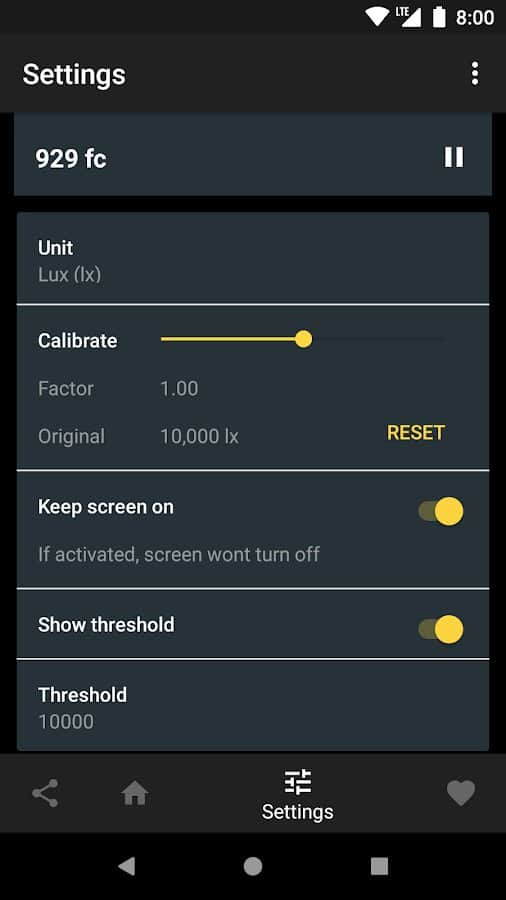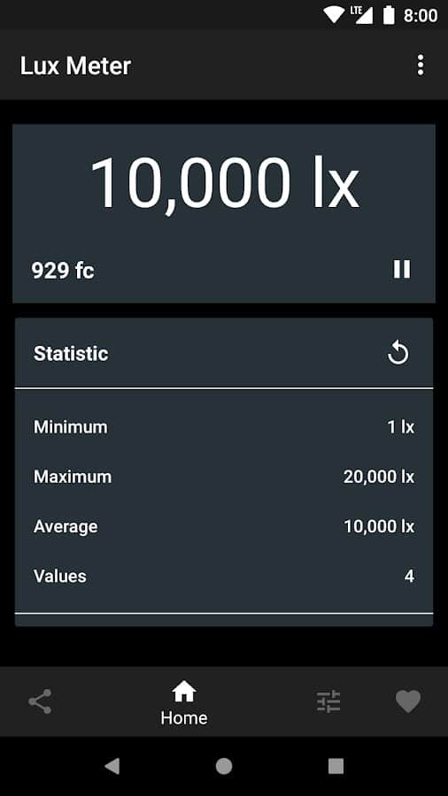 Lux Light Meter – удобный и простой в использовании люксометр. С помощью него можно измерить уровень освещённости в любом помещении. Приложение пользуется датчиком света вашего устройства и не претендует на 100% точные показатели. Данные могут отличаться в зависимости от девайса. Используя программу в домашних условиях и не только можно добиться правильного освещения на всей площади.
