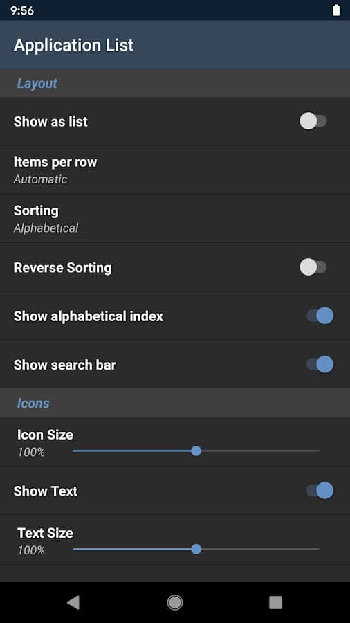 Вам надоел беспорядок на рабочем столе телефона, но вы не хотите прятать все приложения в папки? Lynx Launcher это отличное решение! Благодаря ему, вы можете выбрать самые главные приложения, которые будут сразу на экране при входе. Остальные, второстепенные, отправятся в меню (9 точек в виде квадрата). В нем сверху присутствует поиск, а ниже по алфавиту собраны все иконки. Если у вас их много - справа есть фиксированная таблица, благодаря которой быстрее перемещаешься. Lynx Launcher, также, поможет сменить внешний вид приложений, если они вам разонравились или установить темную тему.