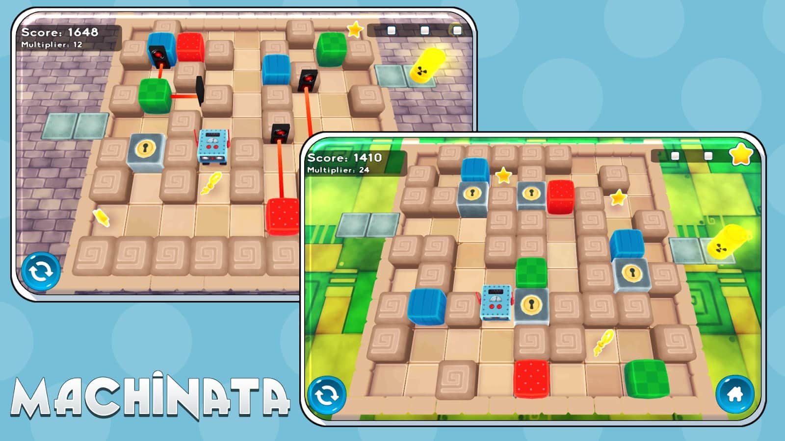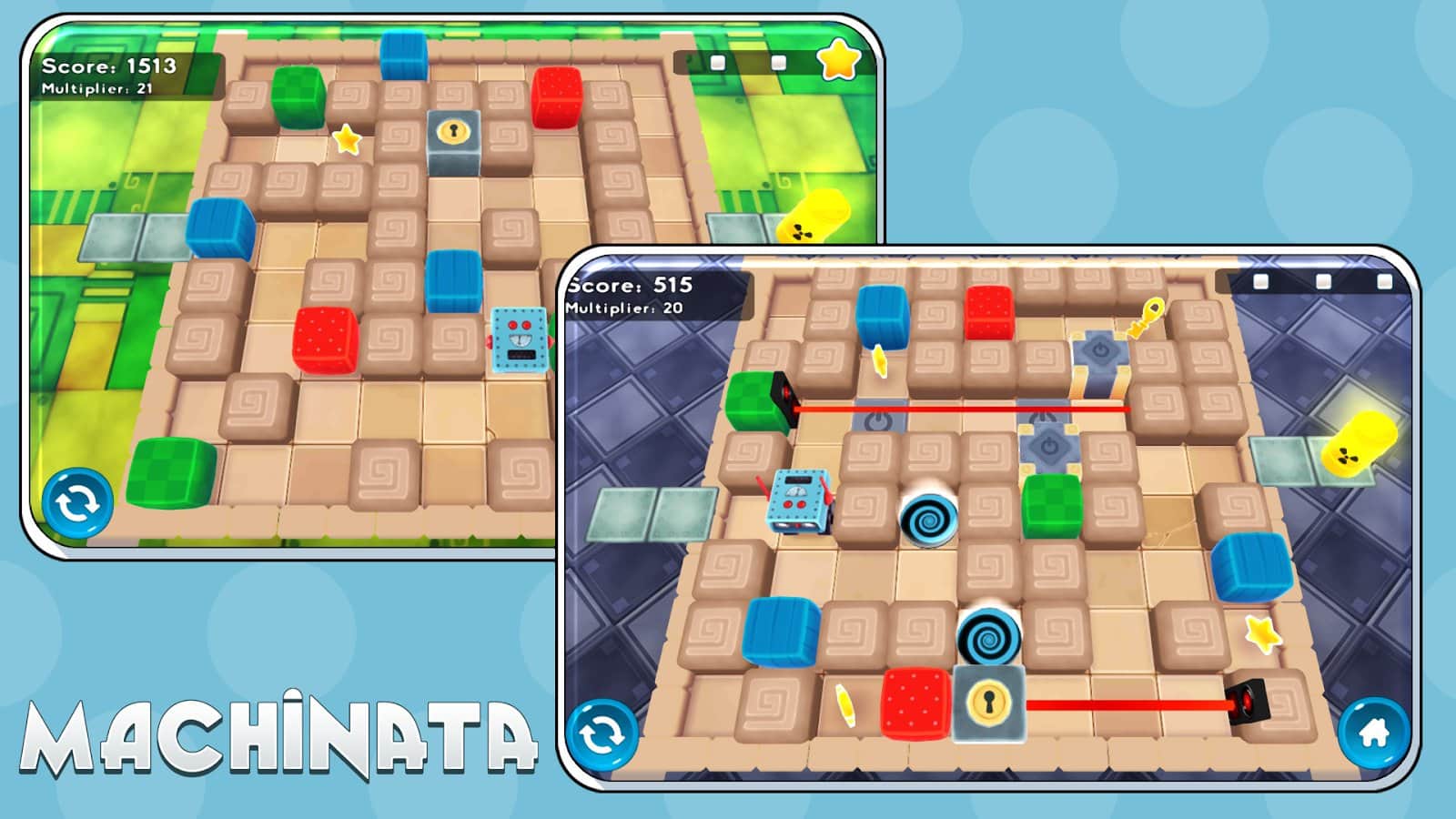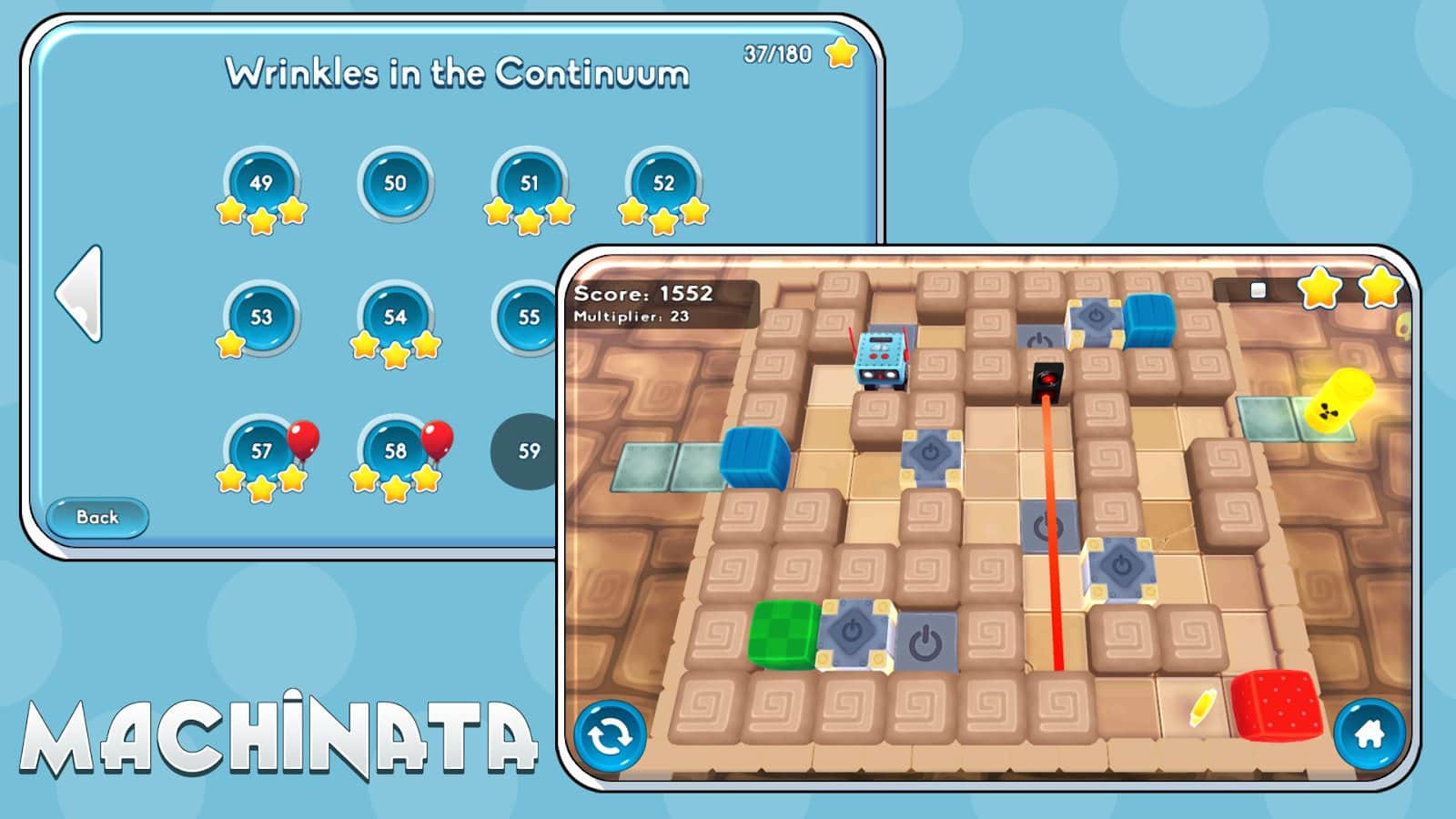 Machinata для Андроид одна из тех игр что на первый взгляд не кажутся чем-то особенным, но стоит пройти хотя бы один уровень и вы будете возвращаться к игре вновь и вновь. И так что же из себя представляет Machinata? Это пространственная головоломка выполненная в трехмерной графике. Каждый из уровней, а их насчитывается более 60, представляет из себя лабиринт наполненный всевозможными ловушками, лазерами, минами и прочими неожиданностями не сулящими ничего хорошего. Ваша задача провести забавного персонажа, а это уморительный робот, через все трудности уровня до назначенной точки. А так как ваш робот это не просто машина, а уникальный механизм способный утилизировать радиоактивные отходы то именно этим вы и будете заниматься по прибытию на точку назначения. Помимо приятной графики, увлекательного геймплея вас ждет еще отличная анимация персонажа и столь забавный герой только дополнит приятное впечатление от игры.