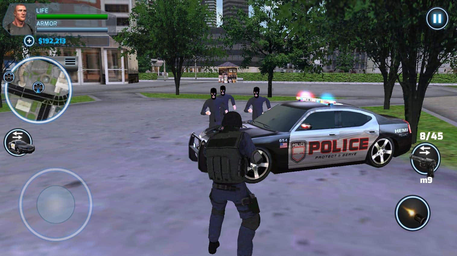 Mad Cop 5 - Federal Marshal – интересный симулятор на андроид, где вы будете выступать в роли полицейского. Продолжение игры, где вы по настоящему сможете себя почувствовать блюстителем закона, который выполняет свою работу на отлично. В этой игре вам предстоит вести охоту на бандитов и выполнять опасные миссии по их уничтожению. Исследуйте огромный и открытый город, ходите пешком либо ездите на полицейских автомобилях, догоняя преступников, а также применяйте разнообразное оружие для защиты. Взаимодействуйте со всеми людьми и ведите свое расследование. Патрулируйте городские улицы и обходите бесконечный трафик на них.