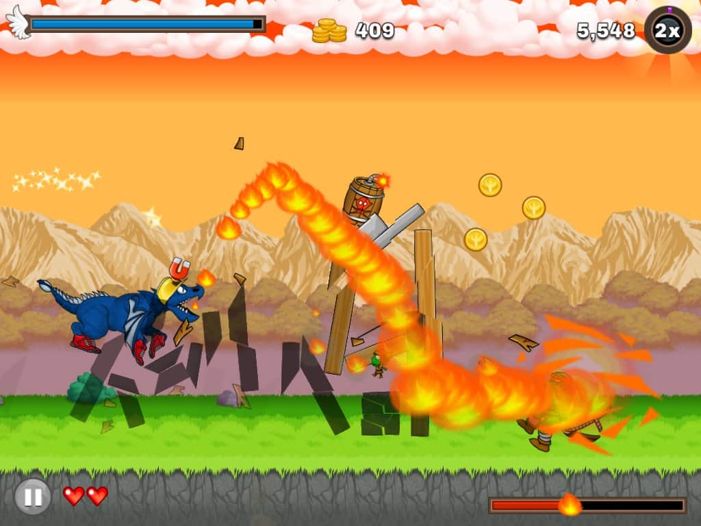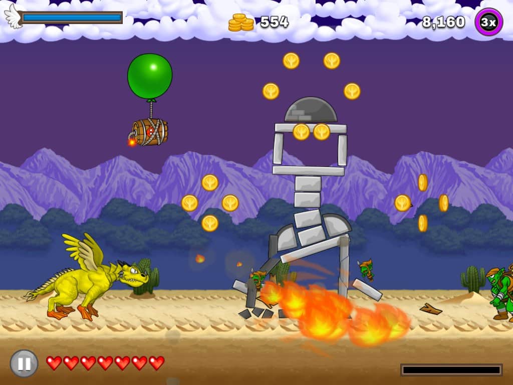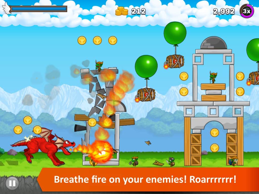 Mad Dragon - игра на аndroid, в которой вы будете управлять огнедышащим драконом. История началась с того что дракона разбудил гоблин, тем что пытался украсть его золото. Дракон проснулся и начал крушить все кругом, догоняя воришку. Помогите дракону догнать и наказать гоблина и его друзей.