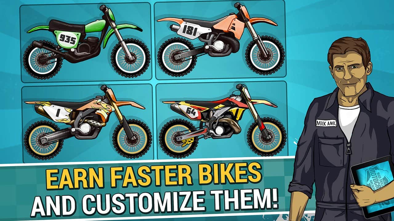 Mad Skills Motocross 2 - Вторая часть отличного мотокросса на андроид. Игра выполнена в платформенном стиле, но с неплохой графикой. Вы стартуете вдвоем с соперником. Выиграет тот, кто придет первым. Но это будет не просто, ведь вся трасса со стоит из гор и трамплинов. Вам нужно управлять углами наклона мотоцикла, чтобы не упасть. Если упадете- гонка проиграна. В игре есть несколько различных мотоциклов и хороший набор трасс.