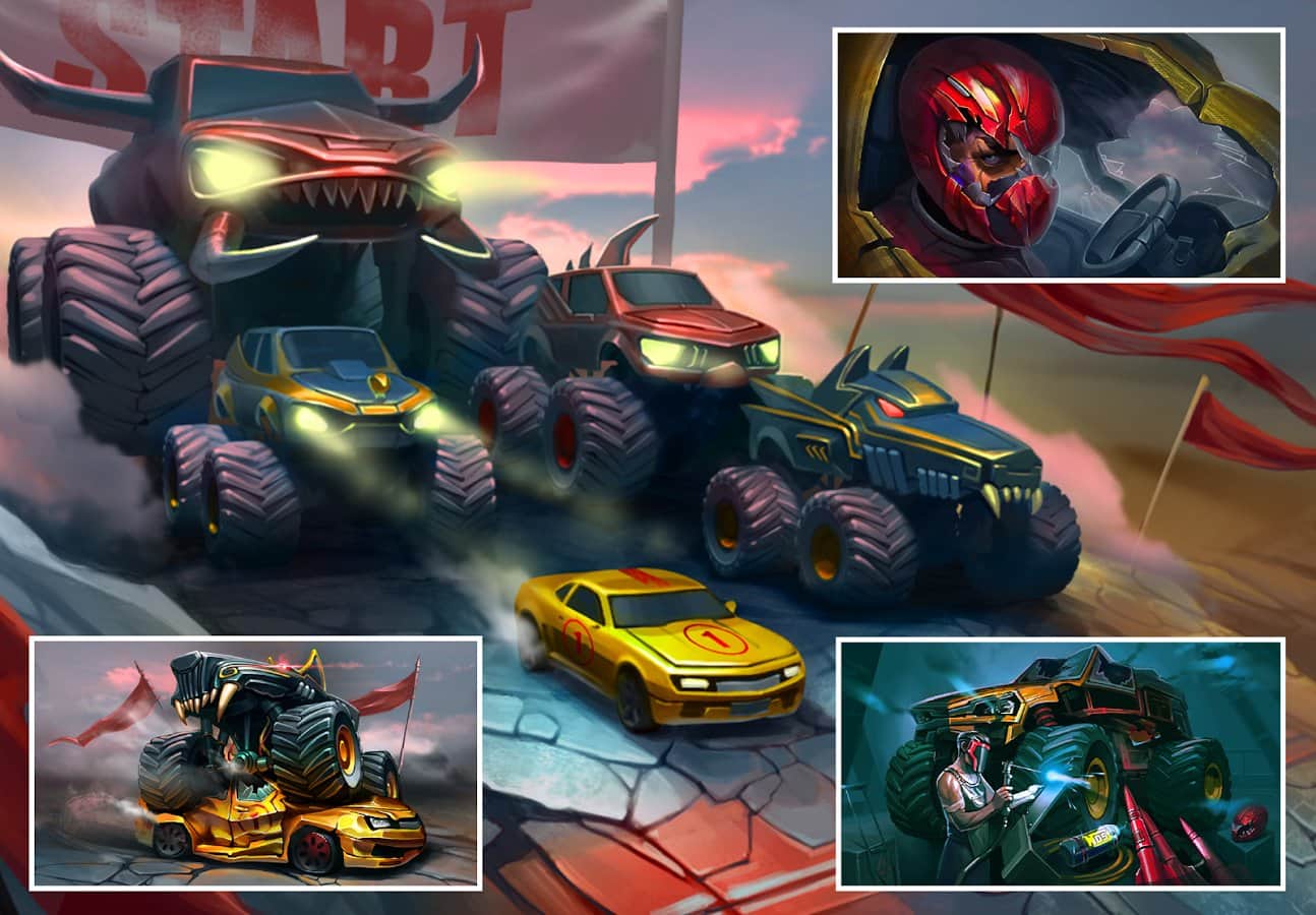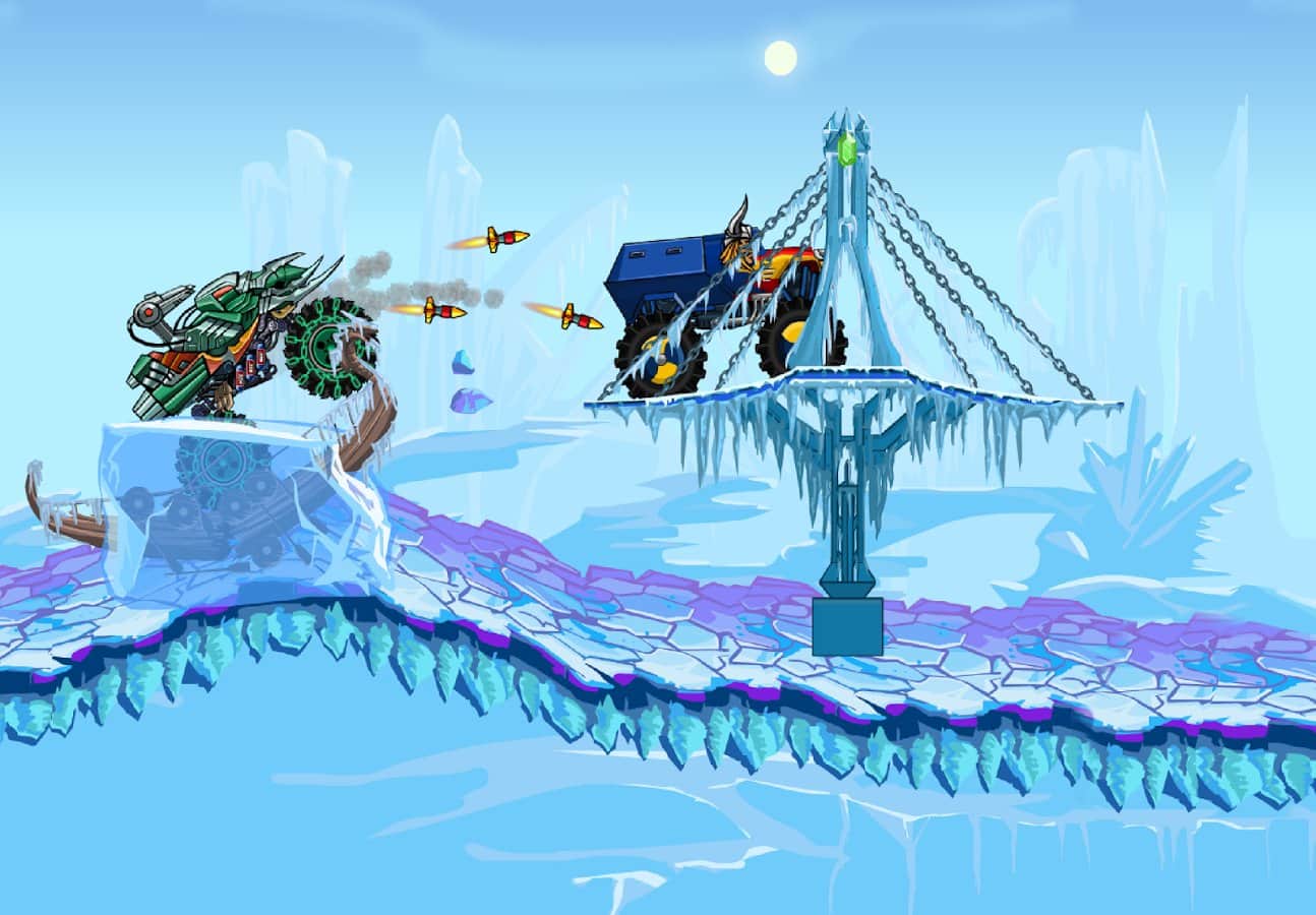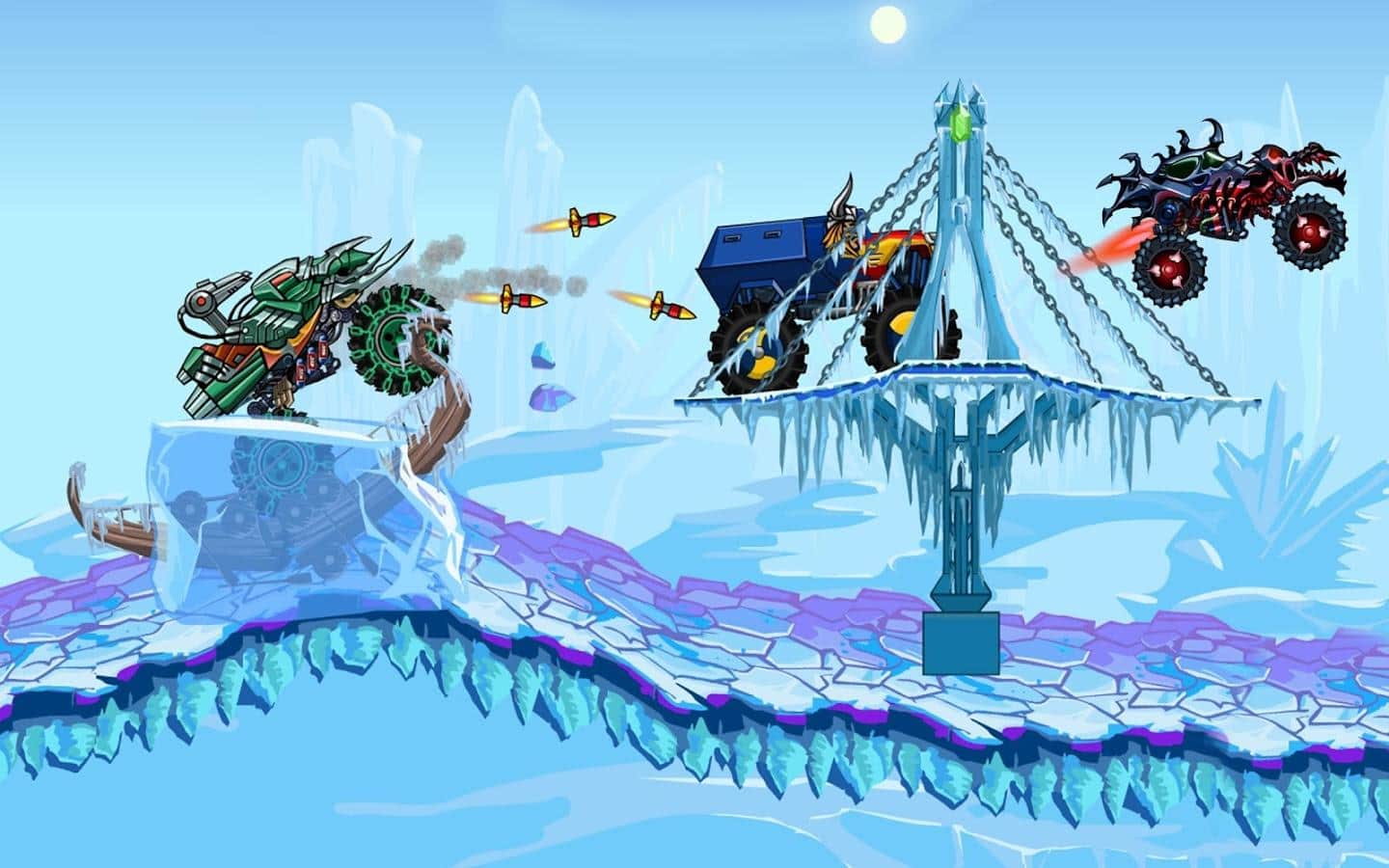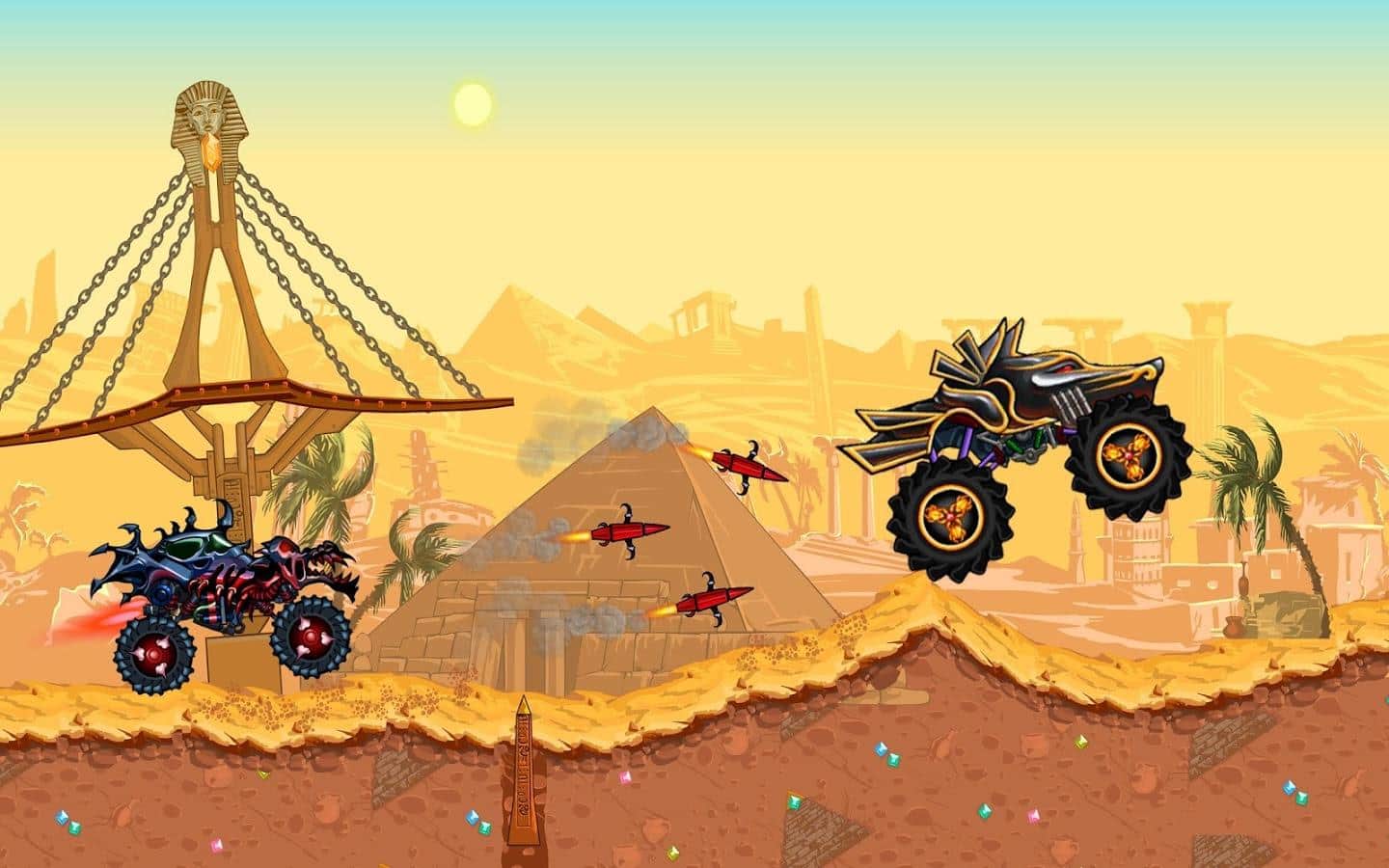 Mad Truck Challenge – Racing- безумные гонки на андроид, по бездорожью на огромных грузовиках. В этой игре вы будете участвовать в гонке с опытными игроками, и стараться добраться до финиша применяя для этого разнообразное оружие. Эта гонка основана на законах физики, где вам предстоит вдавить педаль газа в пол, и мчаться на всей скорости преодолевая препятствия, собирая монетки и обгоняя соперников. На собранные монеты приобретайте в магазине улучшения для своего авто делая его более мощным и все проходным. Также устанавливайте на свой грузовик дополнительное вооружение и превратите машину соперников в груду металлолома.