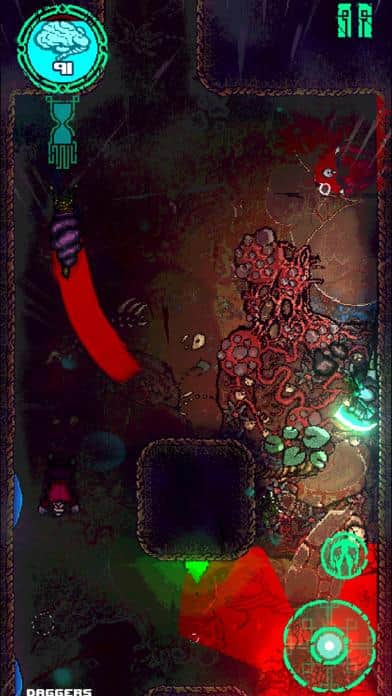 Являясь ярым поклонником творчества Лавкрафта, не мог не приметить эту игру. Думал, что поиграю в ненапряжный стелс-экшен с приятной мне тематикой... Как же я ошибался. Но теперь подробнее: Графика. Решил начать обзор с неё, так как она, объективно, является главным достоинством игры. Пиксель-арт с использованием технологии "объемых пикселей". Суть в том, что один ряд квадратиков накладывается на другой, потом добавляются тени. В результате создаётся впечатление, будто картинка на экране 3D-шная. Пиксели получились некрупные, анимации в почти 60 fps, есть качественные эффекты света, тени и частиц. А дождь вообще выполнен шедеврально. Модельки противников тоже отменны: проработанные монстры с качественными анимациями, 4 босса, несколько мини-боссов. К каждому врагу нужна своя тактика. Хочется отметить gore- эффекты: после рывка через противника из него хлещет кровь, вываливаются внутренние органы, ошмётки мяса и плоти. Отдельно хочется отметить эффект безумия. Выполнен он очень интересно. При потере рассудка главный герой падает и начинает биться головой об пол, разбивая череп в фарш. В это время по экрану бегут помехи, картинка дёргается и багровеет. Если находиться рядом с дико воющим фанатиком, на экране будут появляться искажённые агонизирующие лица. Плюс даже неподвижные объекты медленно перемещаются по экрану, усиливая ощущение безумия. За графику - 10/10. Она шедевральна. Геймплей. Это и плюс и минус игры одновременно. С одной стороны, он достаточно интересен. Как я уже говорил, к каждому врагу нужен свой подход, а отдельные комбинации монстров и ловушек требуют глубоких размышлений и нескольких десятков попыток. Проблема в том, что после любой смерти, которая ПЕРМАНЕНТНА, весь уровень начинается сначала, за редким исключением тех случаев, когда на миссии присутствует контрольная точка. И, как вы могли догадаться, наваливаться на неподдающуюся группу монстров, терпя поражение раз за разом и начиная каждый раз сначала, понравится не всем. Основная, на мой взгляд, странность геймплея в том, что персонаж моментально умирает при попадании в поле зрения монстра. Очень странно.Однако я, человек прошедший через все Соулсы, адаптировался. За геймплей - 7/10. Несомненный плюс в том, что есть разные расходники: кинжалы, бомбы, огнемёты, управляемые турели, дроны - убийцы и т.д. Управление. Черт. Главный враг всей игры. Оно настолько ущербно, что только из-за него у меня не раз возникало желание бросить игру. Само по себе перемещение свайпом - это тупо. Но то, как оно реализовано в данном проекте - это просто садизм. Разработанный для мазохистов. Само перемещение по миру строится на совмещении двух рывков - один от стены, другой, с замедлением времени, уже в полёте. Если во время второго рывка был убит враг или сломан предмет, можно сделать третий рывок. И так до бесконечности. Звучит достаточно интересно: можно делать эффектные и эффективные комбинации атак не касаясь стен, но есть одно "НО". Если во время второго рывка герой летит на ловушку, а путь ему преграждает монстр (от которого игрок планирует сделать третий рывок и избежать гибели от шипов), то после уничтожения существа игра полностью игнорирует команды игрока и сбрасывает персонажа на ловушку. Я много раз пытался разгадать тайну этого феномена, но так и не смог. Пришлось смириться и в комнатах, где