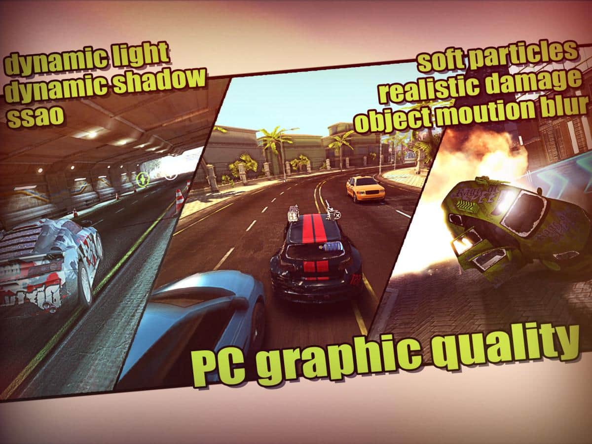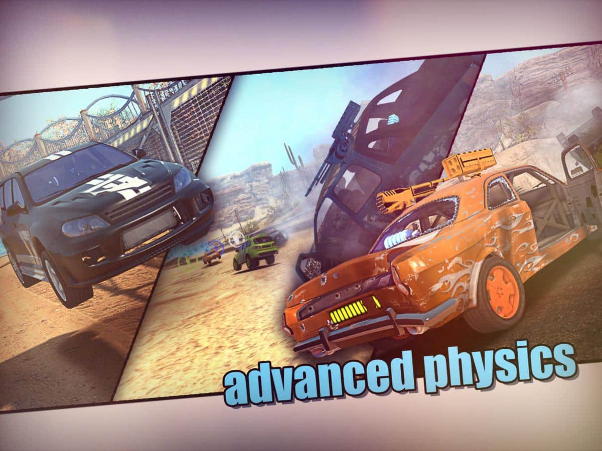 MadOut - гонки с элементами экшена, иными словами - боевые гонки. Вам предоставлен выбор из 13 авто, каждый из которых вы сможете прокачать, как впрочем и оружие на вашем авто. Наслаждайтесь отменной физикой, 50 удивительными трассами и разными погодными условиями. Сметайте все на своем пути, особенно соперников!