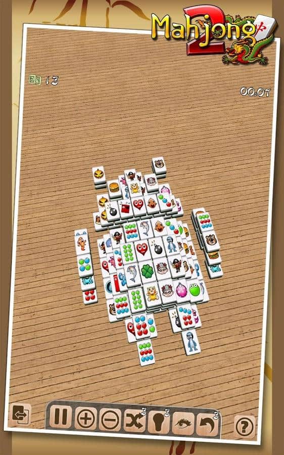 Маджонг 2 – великолепная игра-головоломка для андроид, в которой вам предстоит собрать древнекитайский пасьянс. Ваша задача - не оставить ни одной кости на игровом поле. Как этого добиться: найдите пары расположенные с краю игровых костей с одинаковым узором, что приведет к их удалению с поля и раскроет находящиеся под ними новые кости. Игра не так проста, как кажется, на первый взгляд и потребует немало времени на ее прохождение.