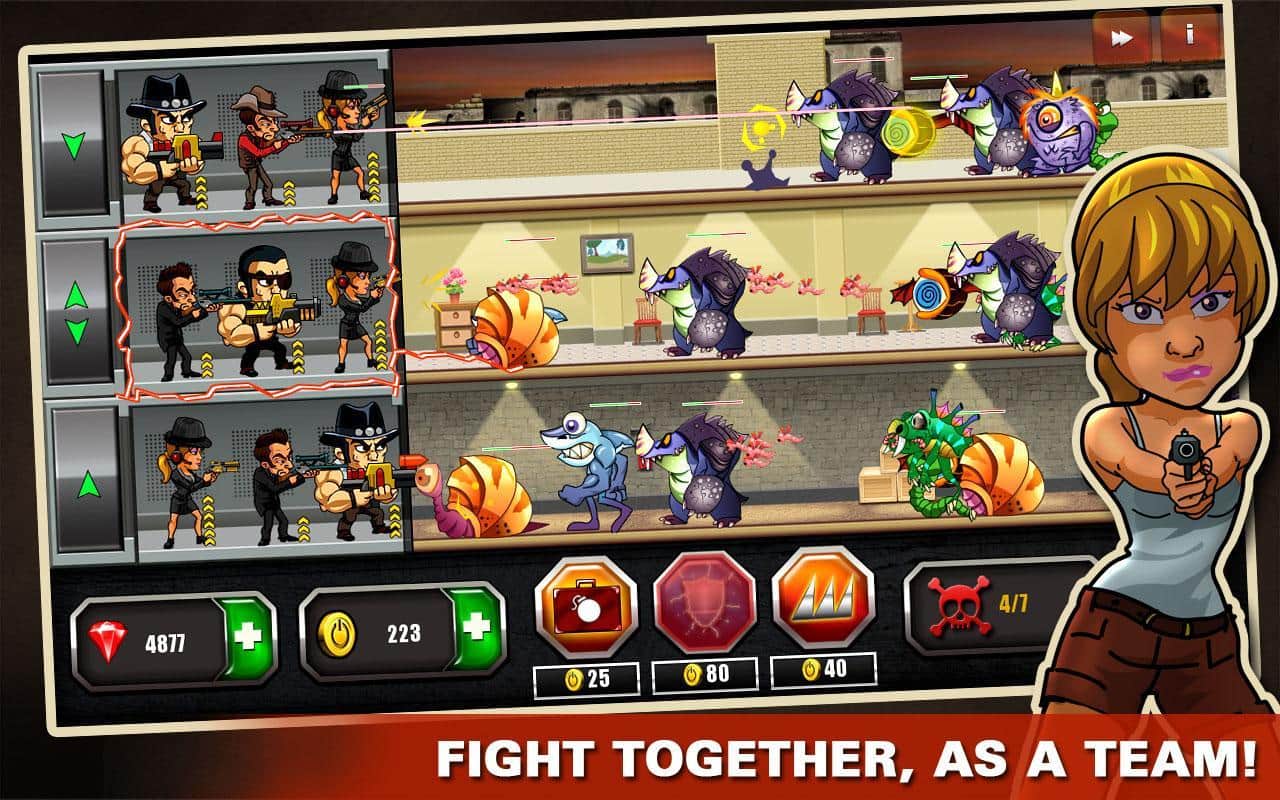 Мафия против Монстров - гангстерская стратегия, в которой вам предстоит вести бой с ужасными монстрами. Ваши гангстеры похитили сокровища монстров, и теперь монстры решили их атаковать и вернуть свое сокровище. Применяйте мощное оружие для борьбы с тысячами монстрами и смертоносными боссами. Время в этой борьбе имеет не последнее значение и вам предстоит выбирать монстров, которых убить будет проще всего и не дать подойти им слишком близко к лифту.