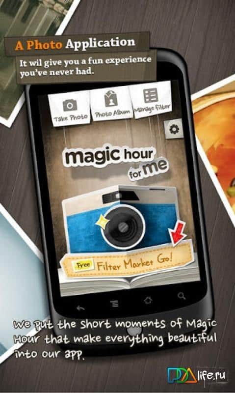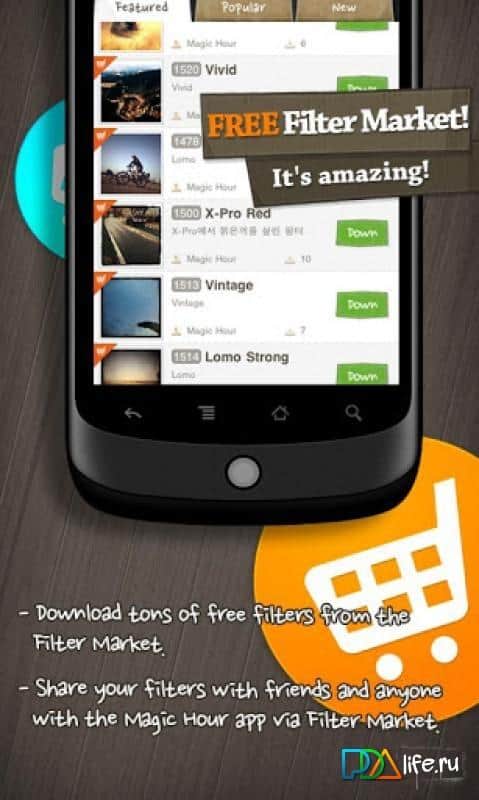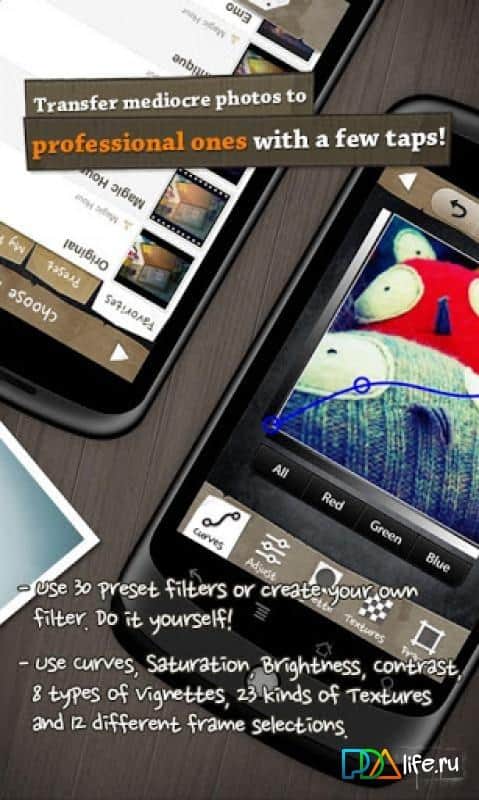 Magic Hour - Photo Editor - Это приложение для людей которые любят накладывать различные эффекты на фотографии к примеру, для инстаграмма. Редактируйте фильтры и создавайте свои собственные эффекты и сохраняйте их как избранные, делитесь ими со всем миром. Вы можете загрузить ваши фильтры чтобы делится ими с друзьями прямо через Magic Hour. В программе уже есть 38 готовых фильтров, к примеру в ретро стиле, которые сделаны профессиональными фотографами. Так же вы сможете загрузить фильтры созданные другими пользователями приложения.
