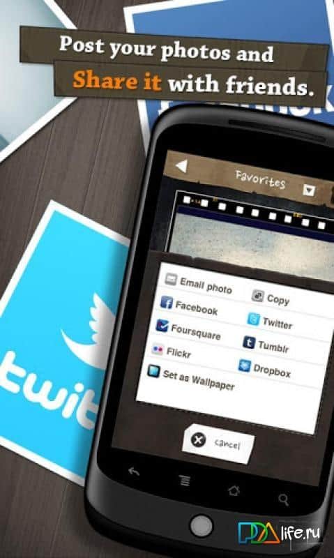 Готовые фотографии можно зразу отправить на Facebook, Twitter