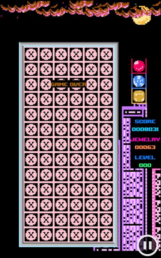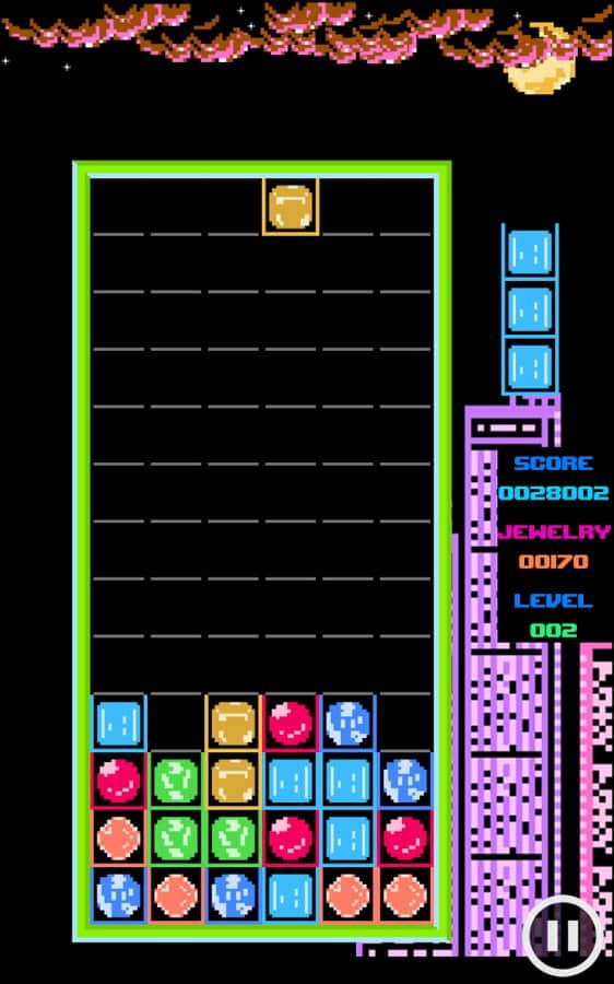 Magic Jewelry – увлекательная игра головоломка на андроид, которая отдаленно напоминает знаменитую игру «Тетрис». В этой игре сложность заключается в том, что сверху на игровое поле падают фигурки одного размера, но имеющие различный цвет. Составляйте их на поле так чтобы собрать по три и более одинаковых цвета в ряд и тогда они исчезнут, очистив место для других. С каждый новым уровнем скорость падения фигурок будет увеличиваться и вам придется изрядно постараться, чтобы завершить уровень успешно. Набирайте достаточное количество очков в этой игре и устанавливайте свой рекорд. Откройте для себя все достижения и бонусы, имеющиеся в игре.