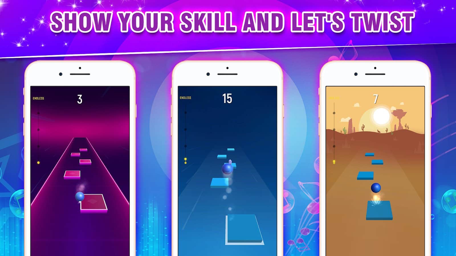 Magic Tiles Hop 2: Dancing EDM Rush – динамичная музыкальная игра на андроид, где вы будете управлять шариком под ритм музыки. Возьмите под свой контроль шарик и проведите его по всем платформам, находящимся на вашем пути. Совершайте прыжки по платформам в такт музыки и проверяйте на деле свой музыкальный слух. Проходите один за другим сложные уровни игры и открывайте для себя новые песни Маршмелло. Мчитесь вперед под приятную музыку и обходите все преграды на своем пути. Достигните максимальной скорости прохождения уровней и справляйтесь со всеми испытаниями.