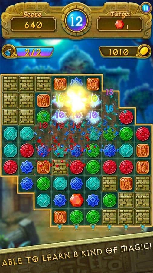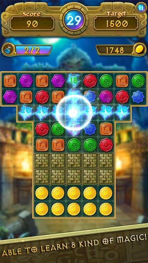 Magic Treasure – игра с увлекательным и неповторимым миром, в который вы попадете и будете искать древние сокровища. В этой игре вашей задачей будет собирать одинаковые по цвету плитки и убирать их с поля. Чем больше одинаковых плиток вы уберете, тем быстрее для вас откроются бонусы, с помощью которых вы сможете быстрее проходить уровни. Прибегайте к помощи различных видов магии и старайтесь составить максимальное количество плиток в ряды, чтобы совершить комбо удар и заработать максимальное количество очков. Игра порадует вас отличными спецэффектами с взрывами плиток и большим количеством уровней.