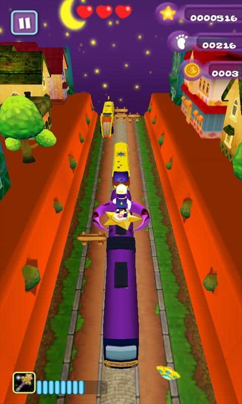 MagicRun - увлекательный и динамичный раннер для андроид, похожий на Subway Surfers. Вы движетесь вперед, избегая столкновения с вагонами, подпрыгивая или уклоняясь! При этом, конечно же, собирайте бонусы и разные сюрпризы. Яркая и красочная, аркада принесет немало минут приятного геймплея!