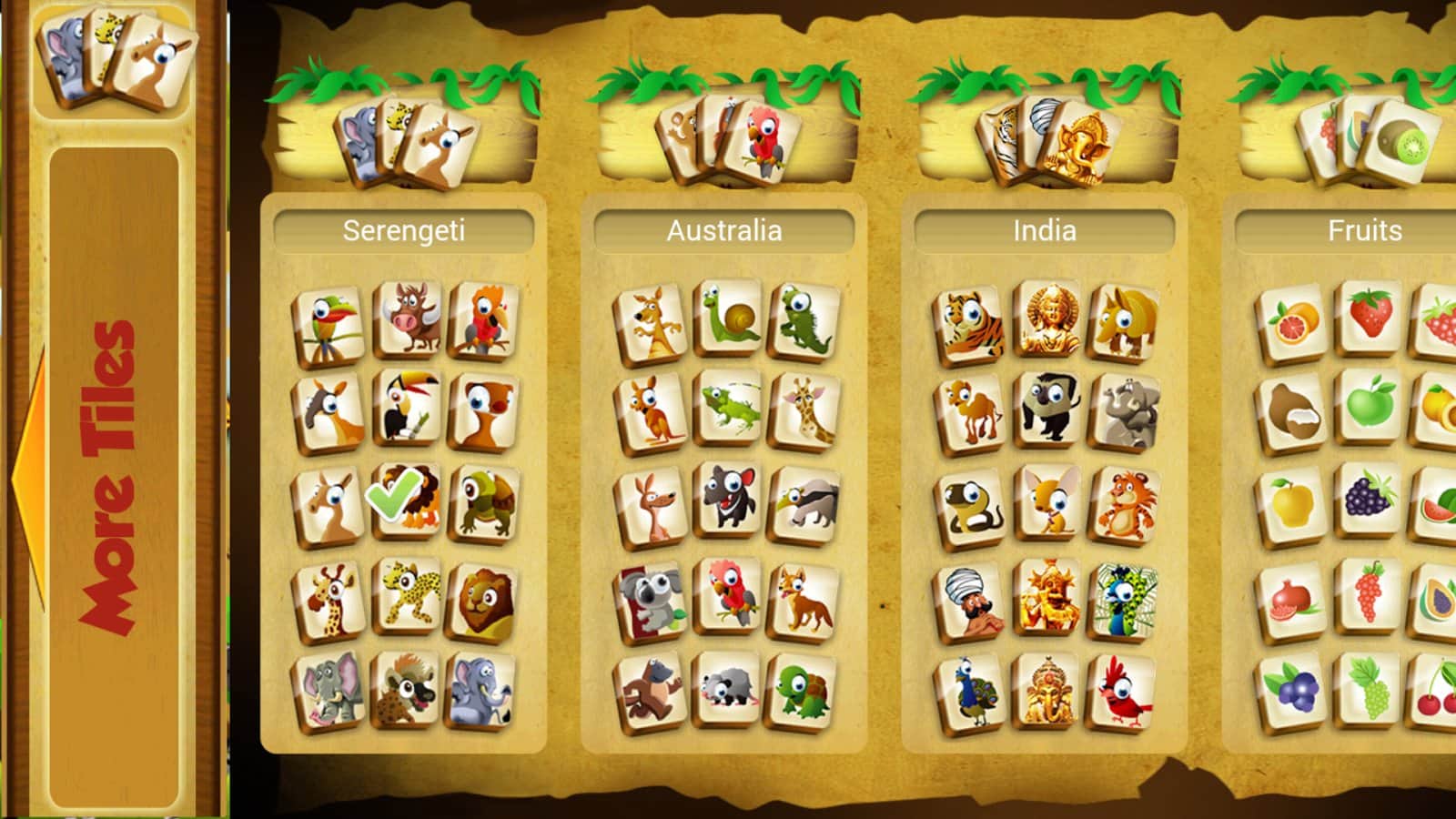 Mahjong Worlds: Exotic – пасьянс на андроид, в котором вы будете путешествовать по различным мирам, и открывать новые страны. Это захватывающая игра по нахождению и складыванию одинаковых плиток. Поначалу в этой игре для вас откроется Серенгети с ее дикой природой и разнообразными животными, постепенно открывайте для себя все новые страны и континенты и наслаждайтесь разнообразием предлагаемых вам плиток. Находите одинаковые плитки на поле и убирайте их, освобождая себе путь для новых и интересных уровней.