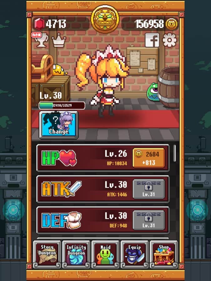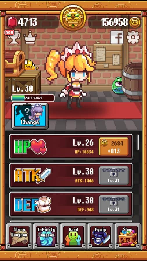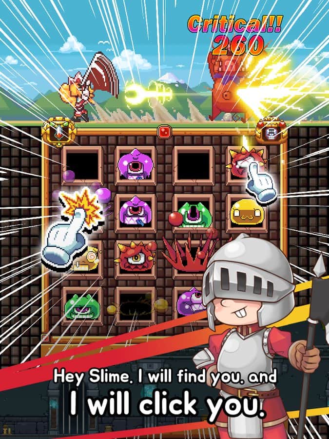 Maid & Slime – управляйте отважной горничной и уничтожайте всех врагов и слизней. В этой игре весь мир захвалили слизни они стали очень опасны, когда научились контролировать разум человека и похитили всех героев. Теперь вам предстоит управлять отважной горничной, которая вооружилась кухонным ножом и отправилась на поиски своих друзей. Вовремя нажимайте на монстров, как только они захотят выбраться из нор и одолейте всех монстров и слизней при этом, не трогая красных монстров. Помогите героине уничтожить всех врагов и отыскать героев. По ходу игры собирайте полезные усиления и предметы и примеряйте для своей героини различное снаряжение. В игре представлено более 100 уровней, 20 видов монстров и 3 режима игры.