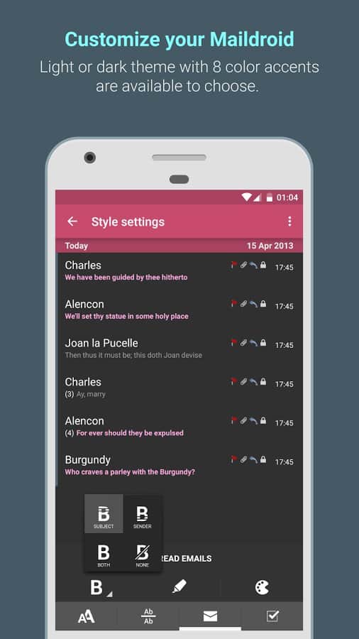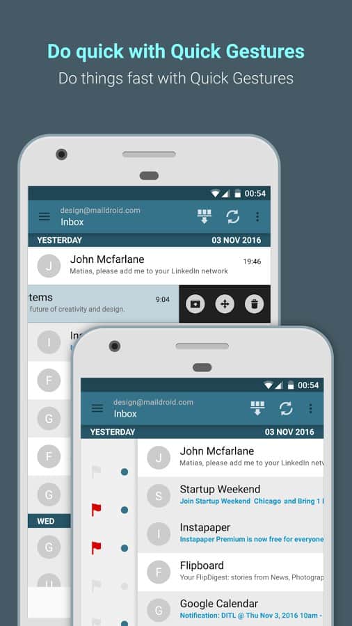 MailDroid Pro - Email App - Почтовый клиент для ваших смартфонов. Это приложение было признано просто огромным количеством людей, оно удобное, простое и не содержит в себе никаких лишних элементов. С его помощью вы сможете открывать письма с различных почтовых адресов в одном месте. Так же здесь есть целая система фильтров для вашего удобства. Помимо простого интерфейса, данное приложение так же имеет несколько отличных виджетов, так что вы сможете читать новые письма даже не открывая само приложение, а лишь взглянув на ваш виджет.