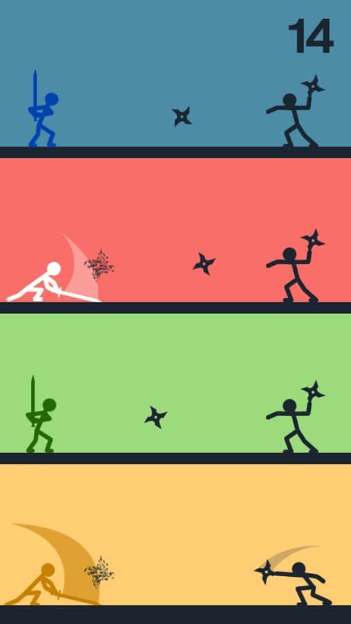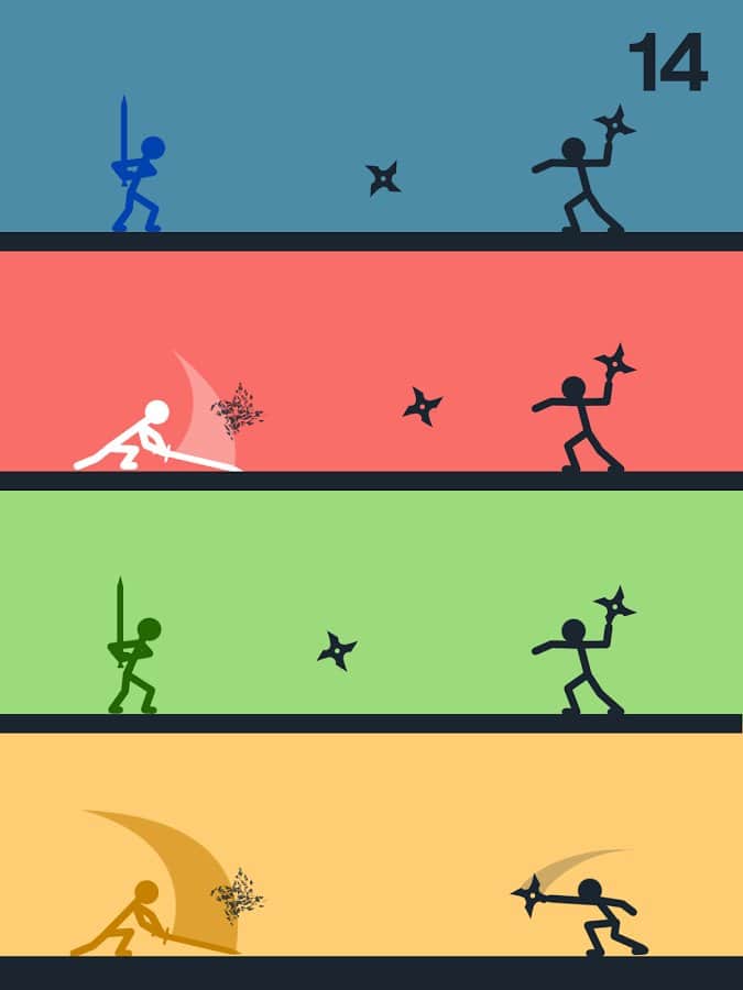 Make Them Fight - третий эпизод популярной серии игр на андроид. В этой игре вам предстоит вести неравный бой отбиваясь своим мечем от сюрикенов, летящие в вас. Игра начинается с того что вам предстоит контролировать двух героев на разных экранах, но с каждым новым уровнем их будет становиться все больше и достигнет 5. Вы может сами попробовать отбиться от такого натиска либо позвать своих друзей на помощь.