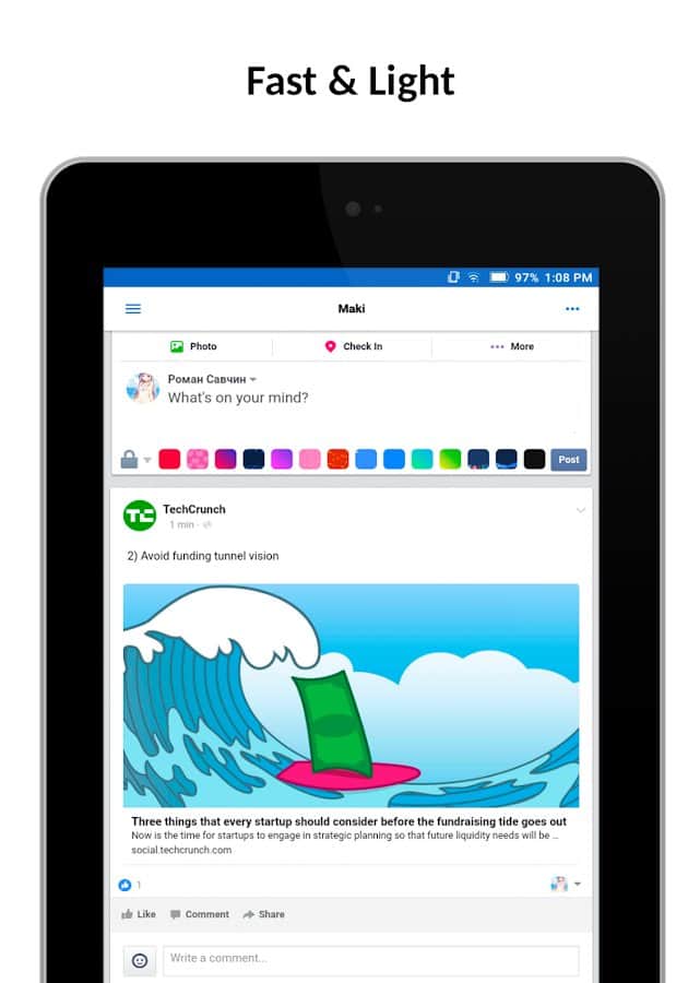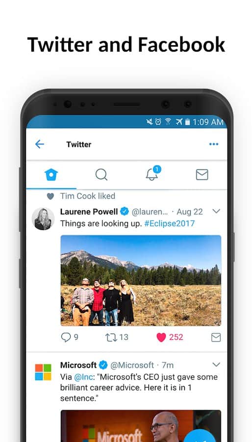 Maki: Facebook и Twitter - Данное приложение вместило в себя: Twitter, Instagram, Google Plus, Reddit, Tumblr, а так же Вконтакте. Это все будет доступно в одном приложении с возможностью простого и удобного переключения между аккаунтами. Полностью настраиваемый интерфейс с множеством тем и возможность использовать все функции социальных сетей делают данное приложение уникальным в своем роде. Да и к тому же оно практически не занимает места.