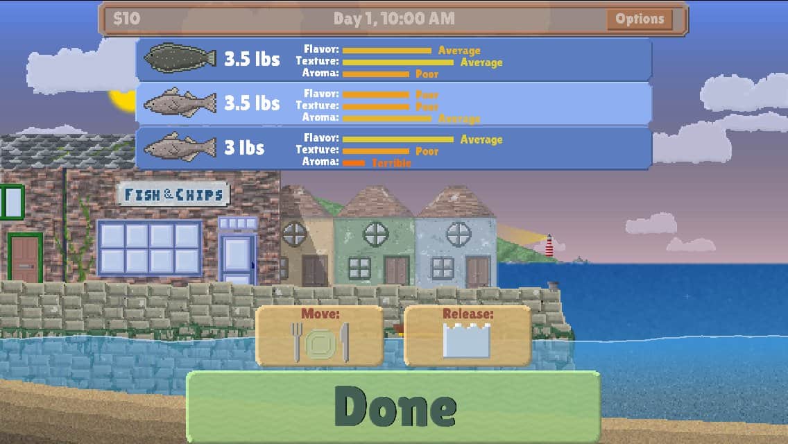 Man Eats Fish - довольно оригинальный игровой проект в котором вам предстоит взять под свое управление рыбный магазин, на первый взгляд идея игры может показаться довольно заурядной. Ведь нам приходилось управлять предприятиями и покрупней, а порой даже целыми странами, благо мир мобильных игр все это предоставляет. Но не все так просто, помимо непосредственно продажи рыбы, обустройства и улучшения магазина вам придется самому заниматься заготовкой продукции. Да именно так, садитесь в лодку, собирайте снасти и в путь, на озеро. То что вы сможете продать в своем магазине будет зависеть от того что вы наловите. Конечно же рыболовное оборудование тоже можно улучшить что даст возможность дальнейшего развития.