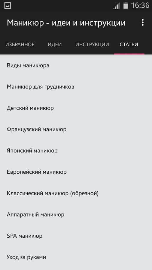 Маникюр - идеи и инструкции – каждая девушка хочет выглядеть хорошо, ну а для того, чтобы она чувствовала себя действительно красивой, красиво в ней должно быть все, даже самые незначительные мелочи. Предлагаем вашему вниманию отличное приложение, в котором вы сможете найти для себя идеи маникюра на все случаи жизни, а так же инструкцию с пошаговым его выполнением. Делитесь особенно понравившимися идеями с друзьями посредством почты или bluetooth, стоит отметить, что данное приложение работает в режиме Offline и не требует подключения к интернету. Оставайтесь неотразимы!