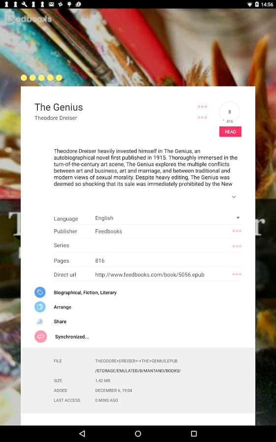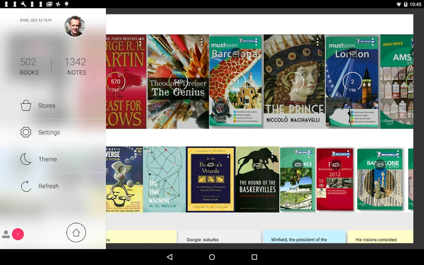 Mantano Reader – еще одна читалка для андроид устройств, но со своими преимуществами. Программа читает файлы PDF и EPUB, поддерживает рукописные заметки, есть возможность чтение текста приятным голосом и многое другое.