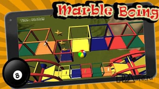 Marble Boing 3D - это увлекательная аркада - головоломка для андроид. Вашему вниманию 18 уровней - разнообразных, отдельно прорисованных, продуманных и очень сложных! Ваша задача - за отведенное время провести шарик по лабиринту до конечной точки, не свалившись за пределы лабиринта и при этом еще собрав все звездочки. Задача не из легких, еще и уровни сами по себе сложные. Проверьте свои нервы на выносливость, а руки на ловкость и мастерство. Управление осуществляется акселерометром. Игра понравится любителям поразмыслить, ведь легких путей решения не будет!