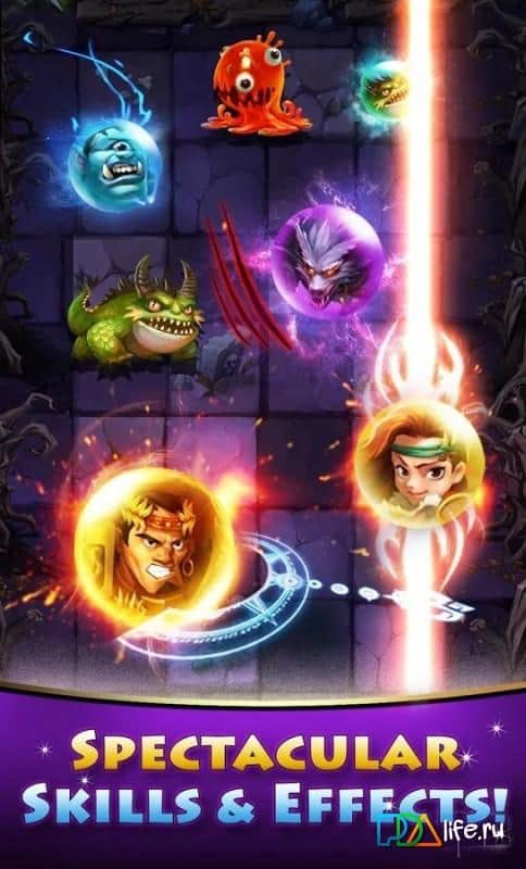 Marble Heroes - Двигайтесь к победе в огромном мифическом мире, наполненным бесконечными путешествиями и сложными квестами! Соберите команду с такими людьми, как и вы, чтобы преодолеть опасность, поджидающую вас в этих опасных смертельных подземельях. Используйте вашу магию, для того, чтобы призвать легендарных героев и могущественных монстров, которые будут бороться за вас, пока вы будете свергать страшных врагов! Разработайте уникальную тактику и маневрируйте своими шариками в нужное место, чтобы победить волны миньонов и главный главарей. Не забывайте активизировать уникальные навыки каждого мрамора, чтобы повернуть ход сражения! У вас будут массивные взрывы, мощные лазеры, бомбардировка врагов, а также многое врагов! Великолепная графика, прекрасное звуковое решение игры - всё это не оставит вас равнодушными!