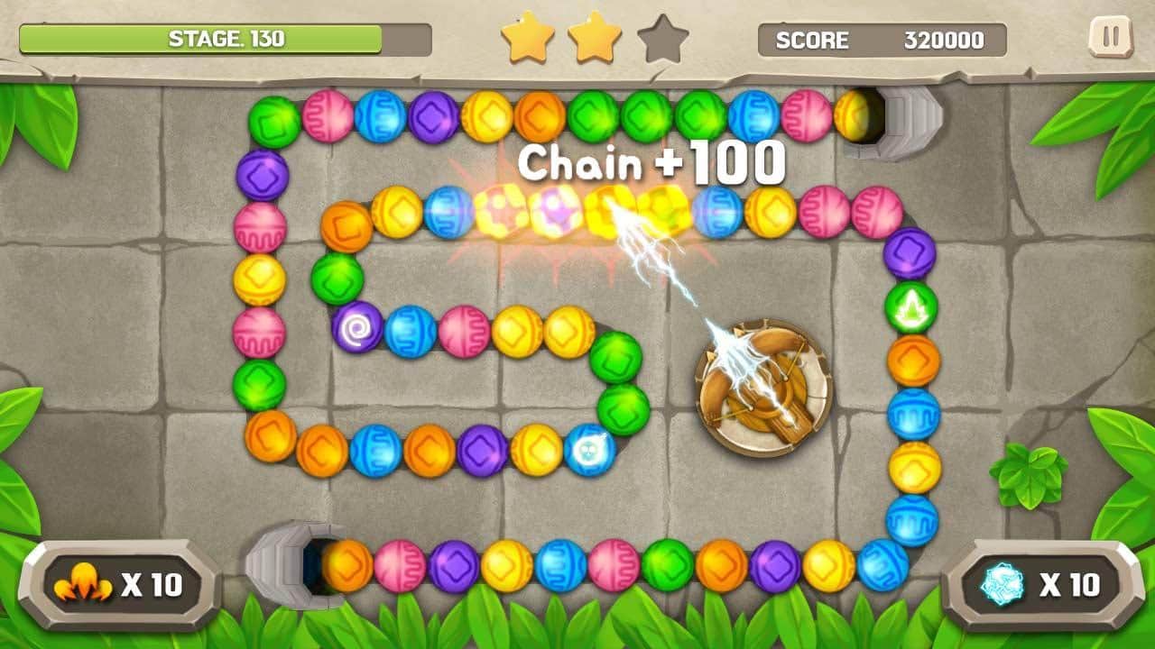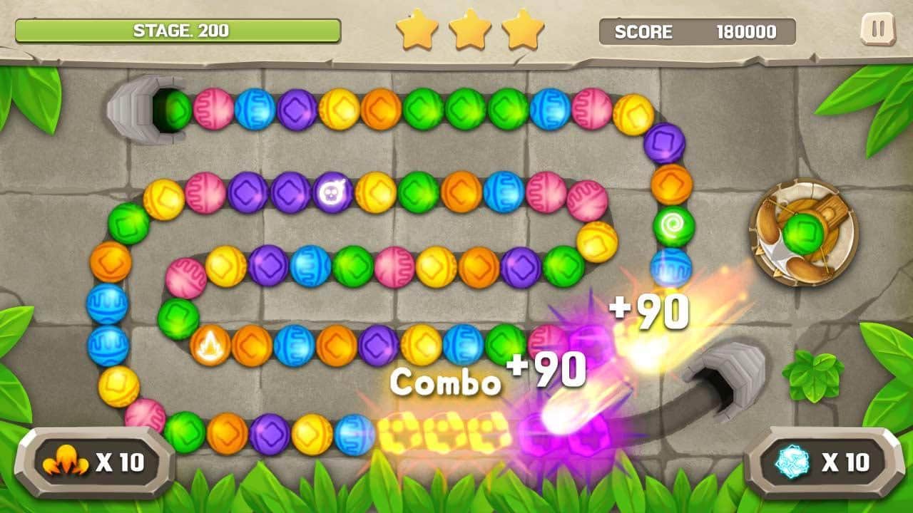 Marble Mission – увлекательная игра на андроид, очень напоминающая знаменитую игру Зума. В этой игре как и в ее оригинальной версии, вам необходимо стрелять разноцветными шарами в движущуюся цепочку и проделывать комбо удары. Подключайте свою логику и ловкость пальцев чтобы попасть шариком в скоплении шаров одинакового цвета и взорвать их. Чем больше вы будете проделывать взрывов, тем медленнее будет двигаться цепочка или совсем останавливать свое движение. Применяйте бонусы и усиления и пройдите все уровни игры.
