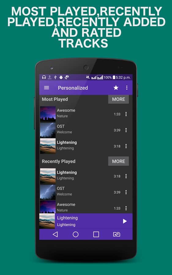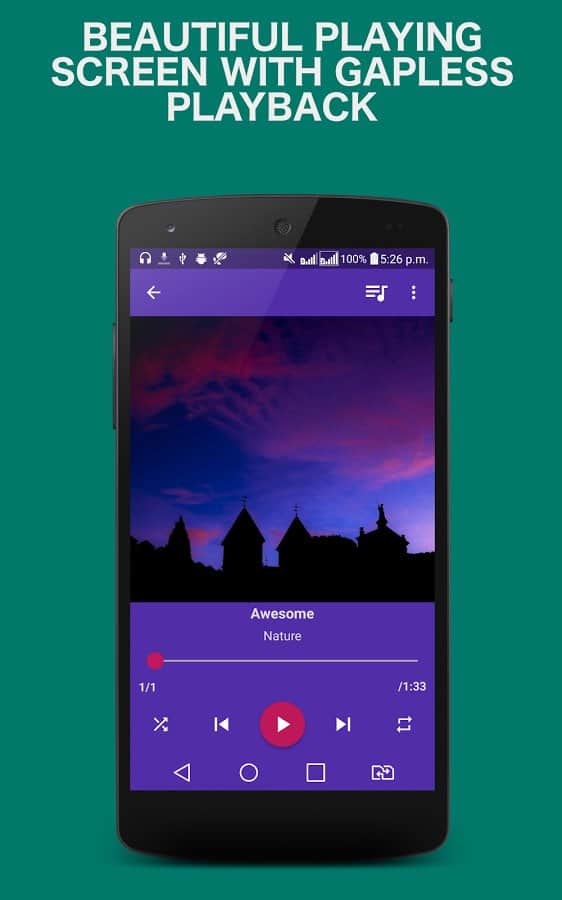 Marine Music Player – простой и функциональный аудио плеер понимающий все современные форматы и отлично воспроизводящий даже самые высокие битрейты. В приложении ест возможность смены скинов, так что вы всегда сможете подобрать именно тот дизайн, который вам по душе. Помимо всего прочего приложение имеет собственный виджет, теперь в одно касание вы сможете включить плеер и насладится своей любимой музыкой. Приложение поддерживает плей листы и создания списков ваших любимых песен. Так-же присутствует поддержка текстов песен. Потребляет всего 10 Mb оперативной памяти, поэтому за нагрузку систему можно не беспокоится.