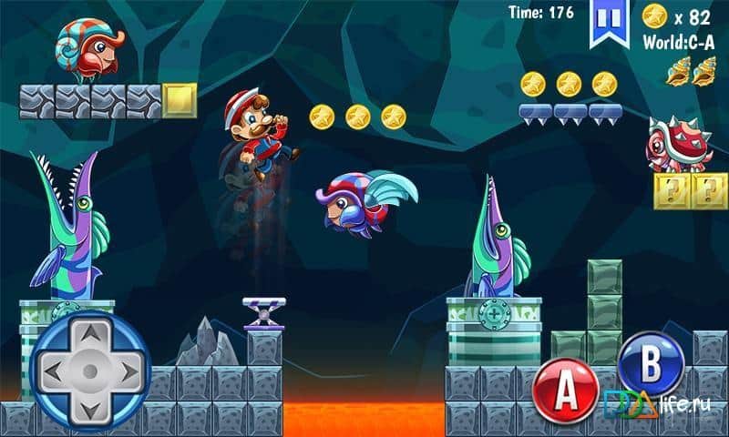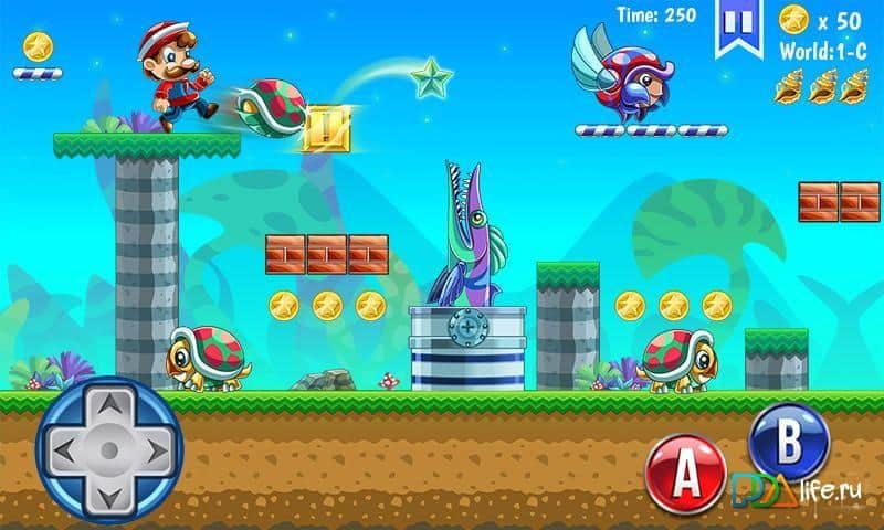 Marine's World - платформер на андроид, сделанный по сюжету знаменитого Марио, только здесь вы будете управлять французом. Путешествуйте по разнообразному и красивому миру, собирая как можно больше монет, сражайтесь с разнообразными врагами и пытайтесь завершить уровень вовремя. Вас ждет большое разнообразие дополнительных бонусов и наград.