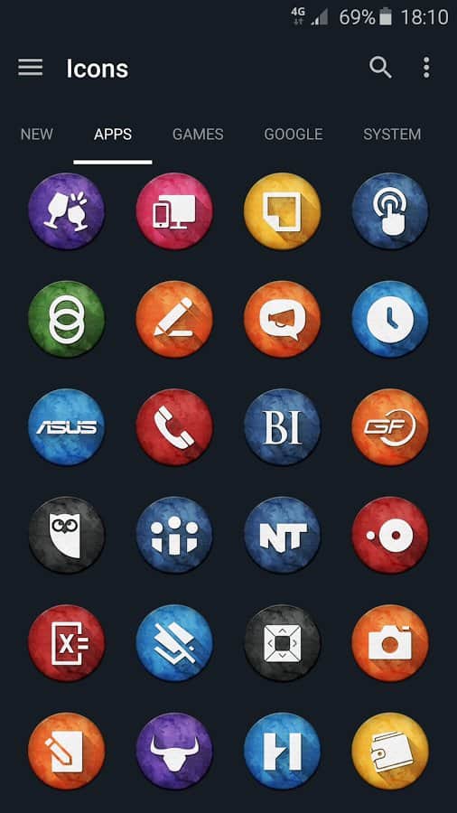 Marvak - Icon Pack - Отличный набор иконок и обоев, с высококачественными текстурами, который поддерживается на большинстве современных лаунчеров, таких как: Apex Launcher, Nova Launcher, ADW, Holo, Go launcher, Action Launcher а так же некоторые другие. Содержит в себе очень большое количество иконок, более чем 1800. Все они сделаны просто на высшем уровне. Так же есть динамический календарь, и поиск по иконкам.
