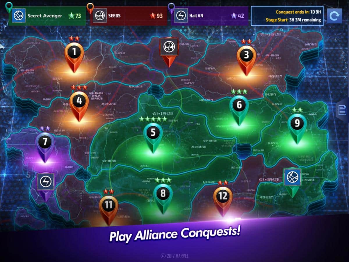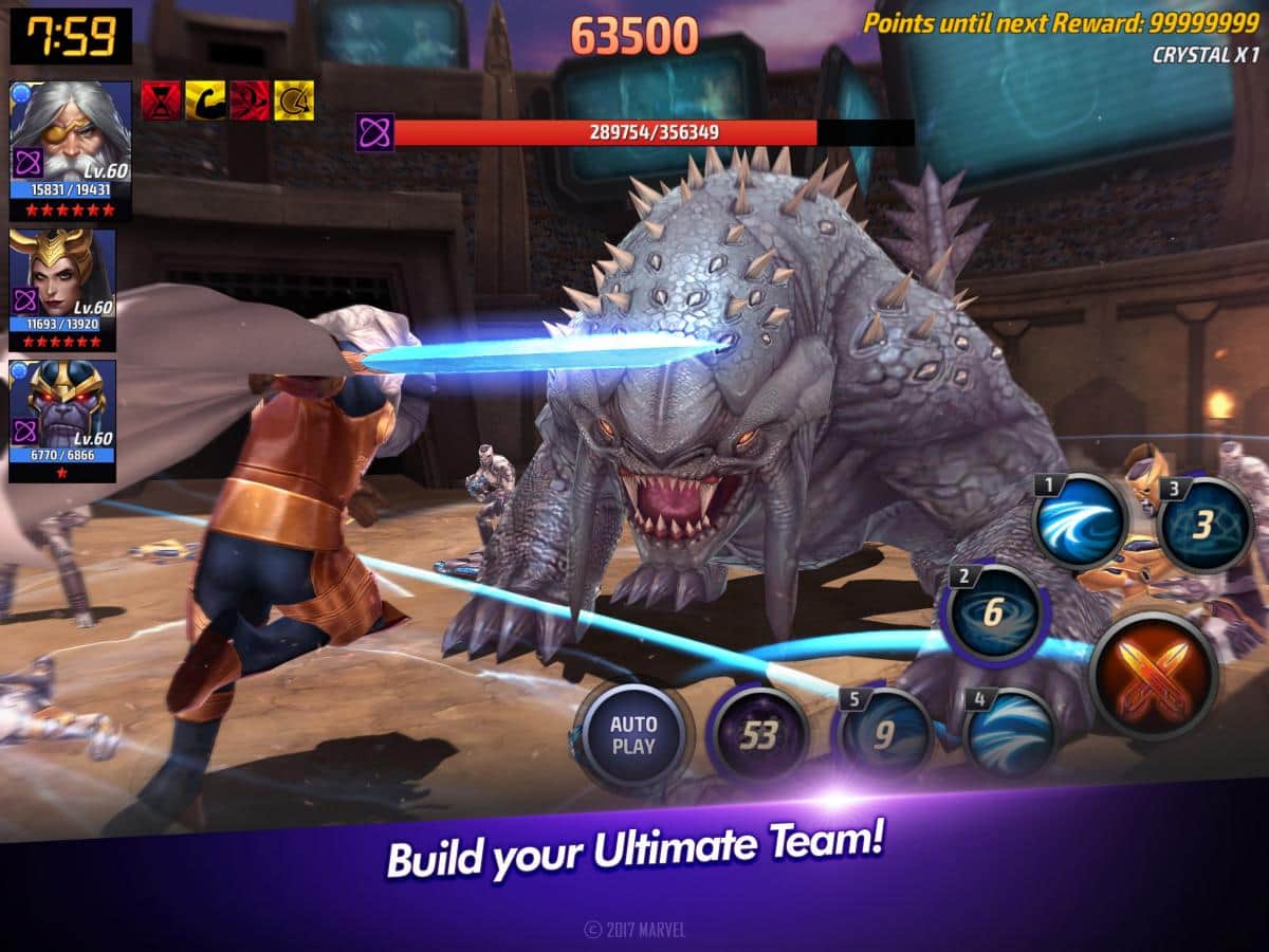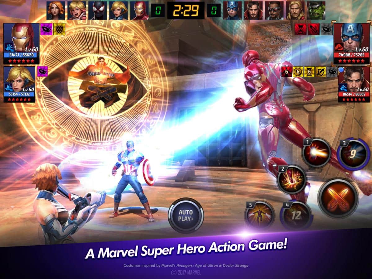 MARVEL Future Fight – финальная битва злодеев с супер героями из известного комикса. Директор Ник Фьюри послал секретное сообщение из будущего, в котором говорилось о том что наша реальность должна распасться на мелкие частички благодаря известным злодеям, которые хотят разрушить мир и тем самым прославиться. Теперь вам предстоит собрать знаменитую команду супер героев которая состоит из Железного человека, Капитана Америка, Человека-паука, Халка, Росомахи и многих других и отправиться на поиски злодеев. Исследуйте все необычные миры и сражайтесь там с ужасными монстрами и врагами. Устраивайте грандиозные бои 3 против 3 и по ходу игры улучшайте ваших героев. Пройдите сотри разнообразных миссий и раскройте истинного врага который покушается на планету Земля.