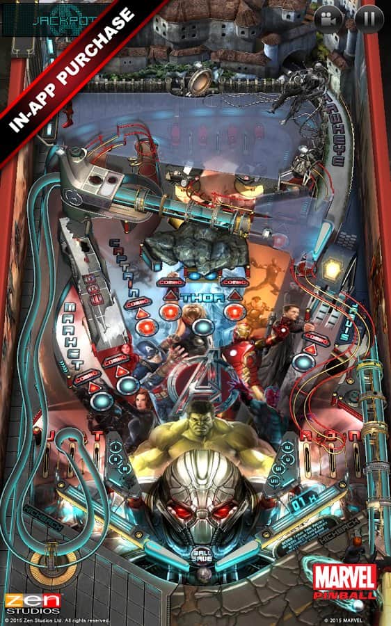 Marvel Pinball - Замечательный пинбол на андроид с красочной графикой. В игре представлены герои всем известно компании Marvel, которые участвовали в комиксах, мультфильмах, или кино. Кроме добрых персонажей, в игре есть и злые. Почувствуйте атмосферу настоящего пинбола, окунитесь его великолепную графику с оригинальным оформлением. Набирайте очки, станьте первым в таблице рекордов игроков!