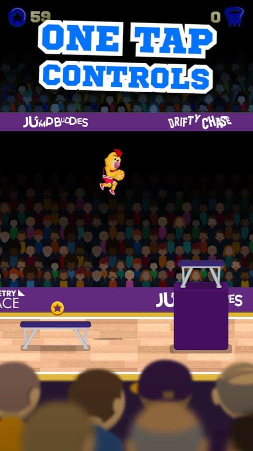 Mascot Dunks – спортивная игра на андроид, где вы будете помогать талисману баскетбольной команды закидывать мячи в корзину. Ведите героя вперед по опасной трассе, состоящей из трамплинов и батутов. Нажимайте на экран своего телефона или планшета в нужный момент и совершайте прыжки и головокружительные трюки стараясь добраться до корзины и забросить в нее мяч. Помогайте герою проходить сложную полосу препятствий и наслаждайтесь одобрительными криками зрителей и фанатов команды. По ходу игры открывайте для себя новых героев, которые будут радовать вас уникальным внешним видом и проделывайте невероятные и зрелищные броски. Установите свой рекорд в этой игре.