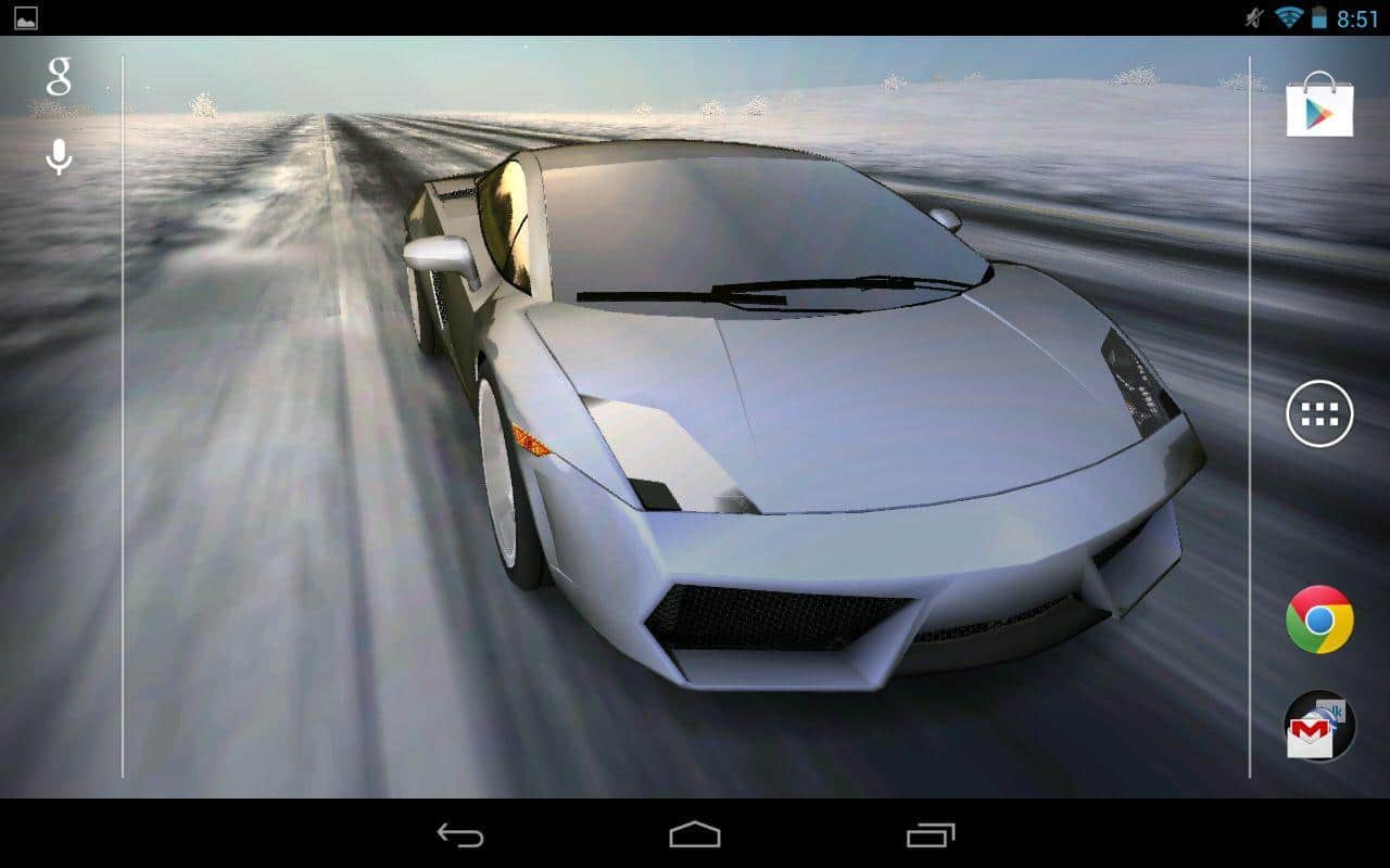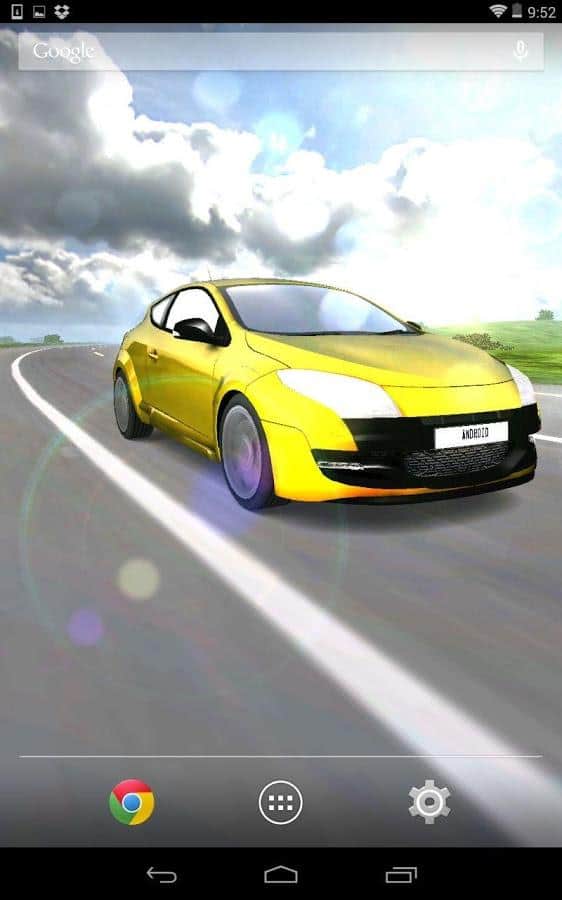 Машина 3D - быстрая гонка, спортивный автомобиль, попутный ветер… все для любителей быстрой езды на живых обоях для андроид от разработчика Axiomworks, Inc. Подберите модель автомобиля, цвет, пейзаж, погодные эффекты, а так же другие настройки для ощущения себя настоящим гонщиком.