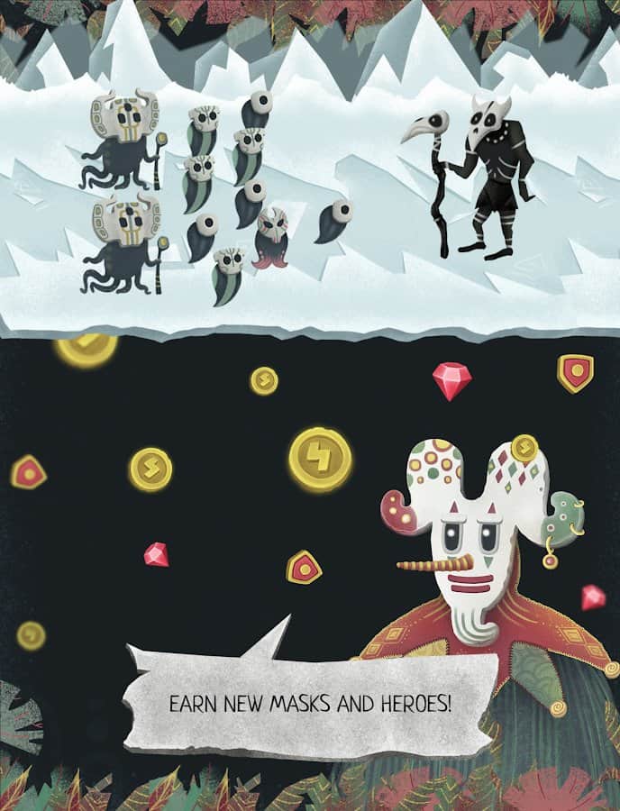 Mask Merge - мистическая аркада с элементами ролевки события которой разворачиваются в неком вымышленном мире, мире в котором уже несколько веков идет ожесточенная война между духами и шаманами. Стоит отметить что шаманам удалось заточить духов, но со временем волшебники постарели и потеряли былое мастерство и теперь вам во главе с окрепшими духами предстоит постараться обрести свободу. Особенностью игры является то что все ваши умения и навыки будут определять различными масками, которые вы будет получать в процессе прохождения.