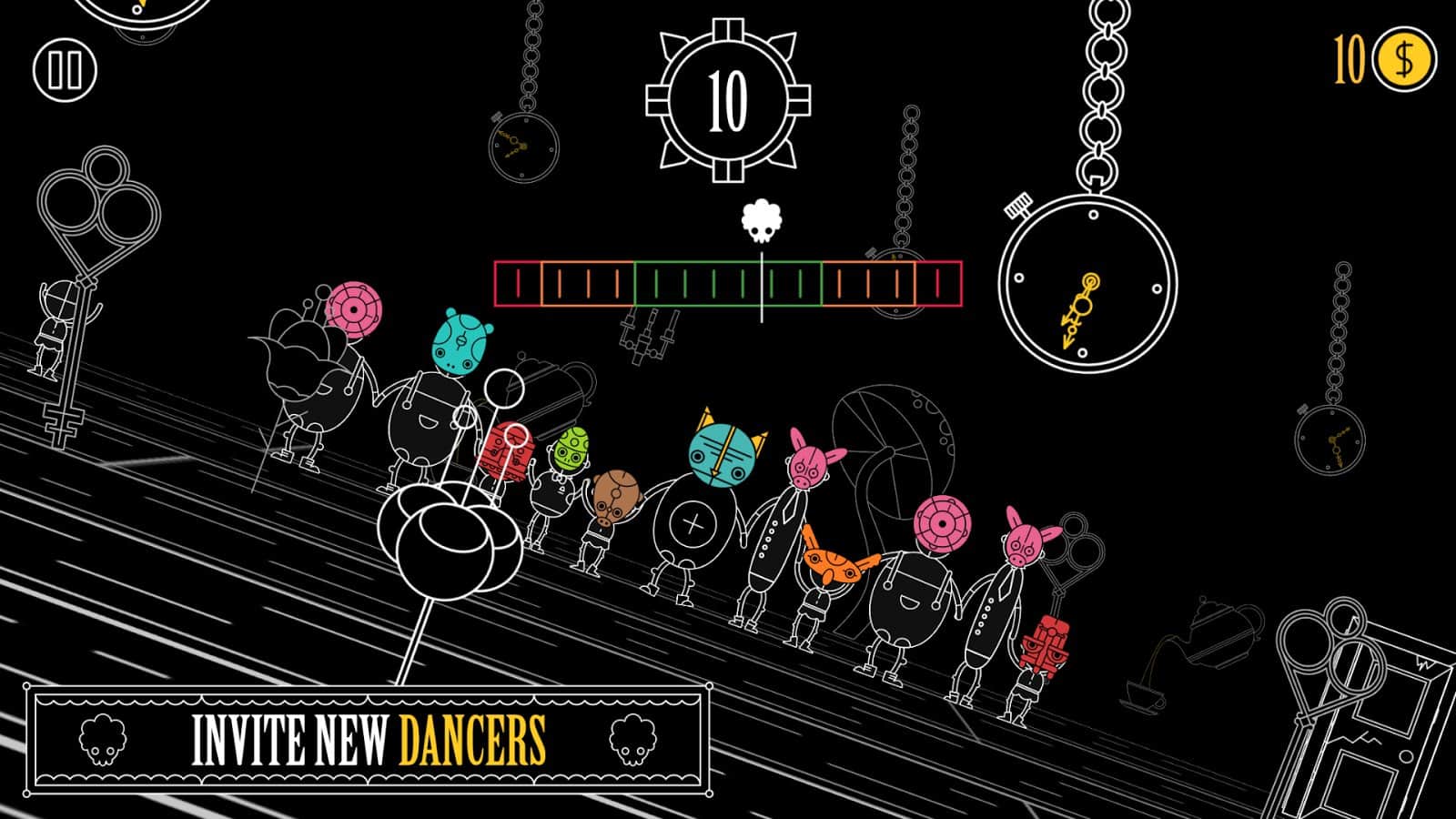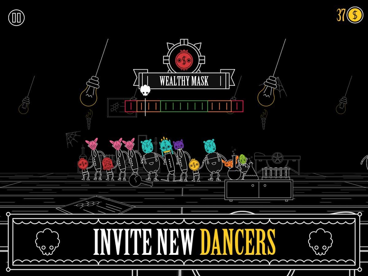 Masky – музыкальная игра на андроид, где вашей задачей будет сохранить баланс под динамичную музыку. В этой игре вы окажитесь на невероятном костюмированном балу, где все гости будут одеты в различные маски. В этой игре, когда зазвучит мелодия, вашей задачей будете танцевать под музыку и сохранять баланс. С каждым новым уровнем игры к вам будут присоединяться другие участники танцев, и вашей задачей будет учитывать их движения и соблюдать баланс, чтобы не упасть. Разблокируйте как можно больше участников игры и увеличивайте скорость танца. В игре представлено 10 уникальных миров, 10 неповторимых музыкальных треков и огромное количество разнообразных масок.