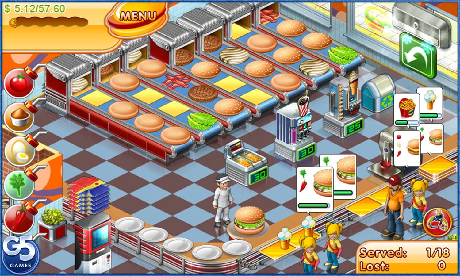 Мастер Бургер 3 – продолжение популярной игры, где вы будет помогать находчивому парню по имени Ронни открыть свою бургерную. После ошеломительного успеха в своем городе наш шеф повар открывает «Мастер Бургер» в Голливуде. Посетители быстро определили, что в этом кафе вкусно кормят и пошли туда толами. Помогите Ронни успевать обслуживать всех посетителей, принимая у них заказы на бургеры, пироги, лазанью, картофель фри и газировку. Это динамичная игра предложит вам пройти более 75 уровней, проделать более 90 рецептов и попробовать 18 специальных соусов. Играйте и получайте максимум удовольствия.
