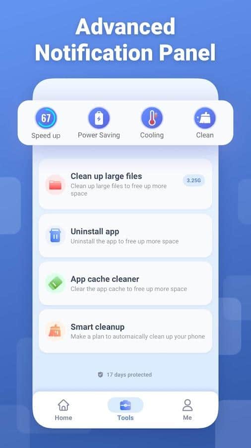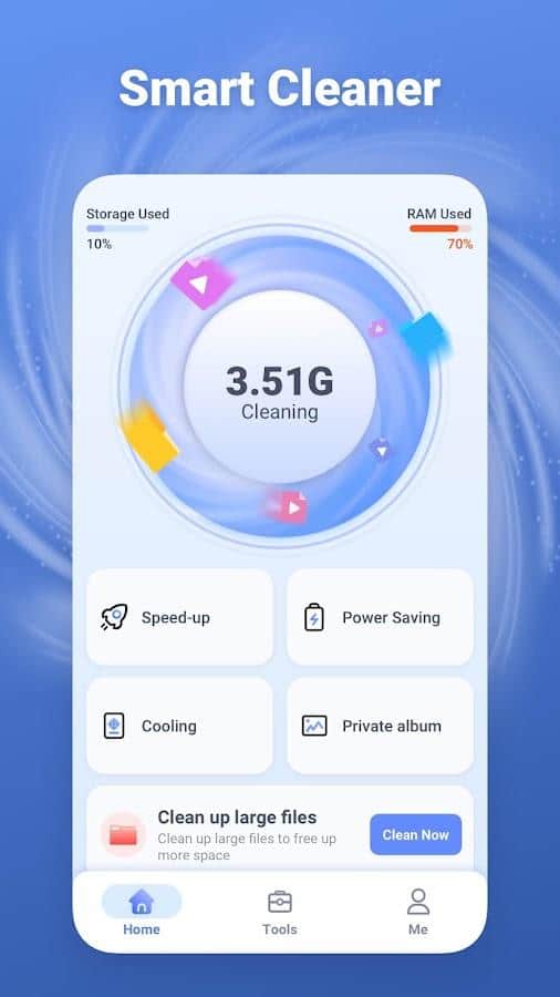 Регулярно освобождая забитую память телефона от всякого мусора, вы обеспечиваете себе не только быструю работу и производительность, но и высокую безопасность данных. В этом приложении собраны все самые необходимые функции, которые вы можете использовать в собственный целях: создание личного альбома и его скрытие, обнаружение похожих фотографий и их полное удаление, очистка кэша приложений и уничтожение слишком больших файлов, собранных на смартфоне где-то внутри.