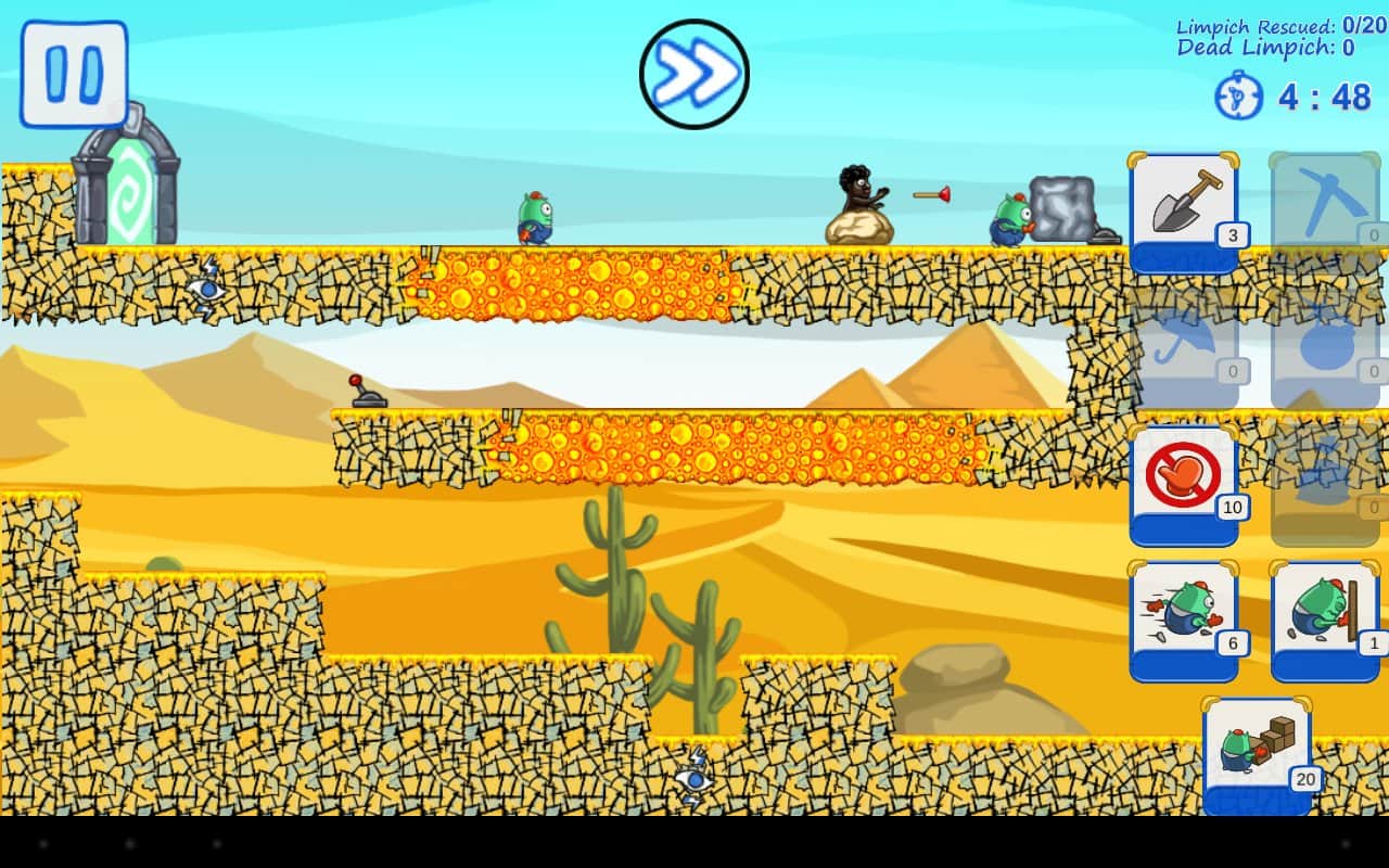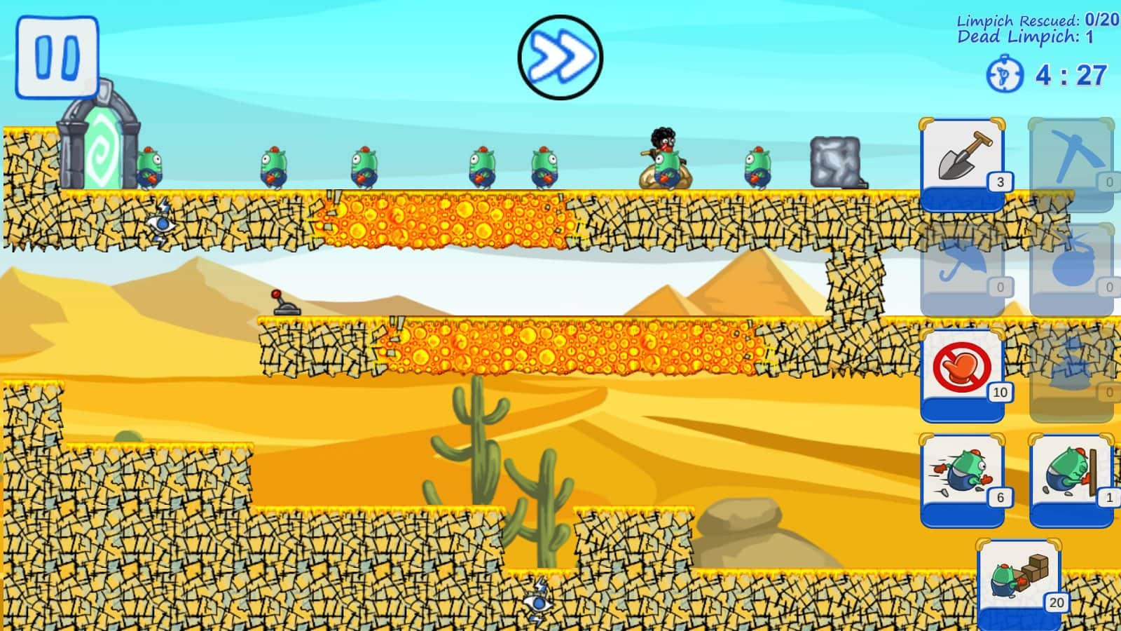 Master Of Limpich - Это игра в стиле логической аркады, головоломка с простыми правилами и не простыми заданиями. Основная задача игры - хотя бы один из отряда должен добраться до назначенного пункта. Методы и способы зависят только от тебя. Члены отряда выполняют ваши приказы беспрекословно, даже могут самоуничтожится. На своём пути ты встретишься со разными заданиями, где ты сможешь проявить смекалку и сноровку. Тебя ждут 40 уровней, которые делятся на 4 зоны: лес, пустыня, зима и завод. Для успешного прохождения уровня достаточно провести до конца хотя бы одного Лимпыча, но максимальное количество очков можно получить только за проход всех Лимпычей, но для этого ты должен показать всю свою изобретательность, ловкость и стратегическое мышление на какое ты способны!