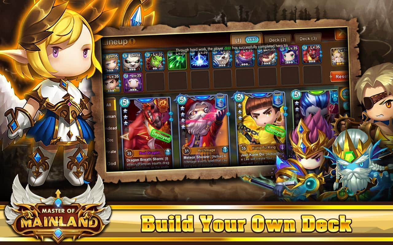 Master of Mainland – ролевая игра на андроид, где вы будете собирать коллекцию карт с героями. Соберите свою непобедимую коллекцию карт и таким образом сформируйте сильный отряд. Путешествуйте по фантастическому миру игры и сражайтесь с сильными противниками. Каждый герой в вашем отряде будет обладать уникальными навыками и умениями и иметь сильные или слабые стороны. Бросайте вызов игрокам со всего мира и сражайтесь с ними на арене. Получайте ценные призы за победы и пополняйте свою коллекцию новыми героями.
