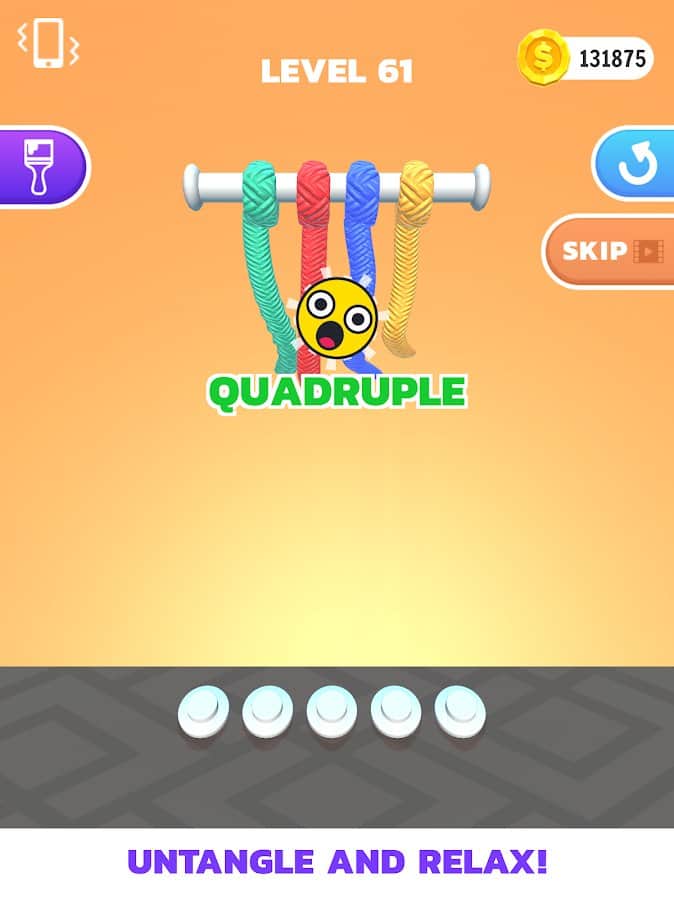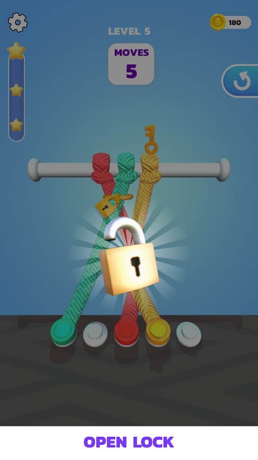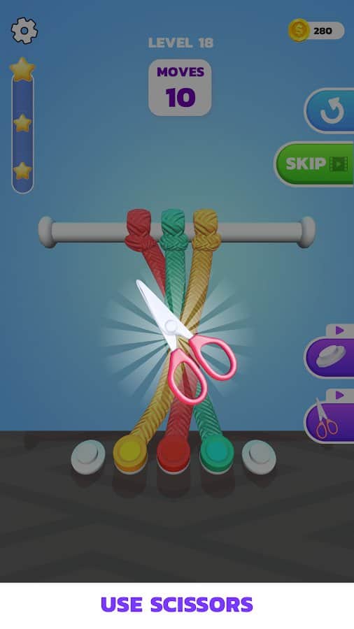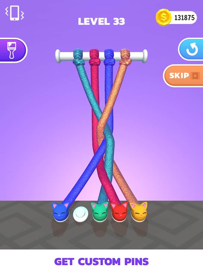 Мастер распутывания в 3D - оставьте себе сложный вызов: распутать все узлы в больше чем 50 уровнях! Сложность каждого уровня повышается, но играть становится еще интереснее. Попробуйте развязывать узлы без использования дополнительных способностей, пропусков или перезапуска сначала. Набирайте не только опыт, но и звезды и золотые монетки, за которые потом можно что-то купить. Утраивайте свои награды или получайте ровно столько, сколько должны были взять. Насладитесь спокойной обстановкой и постарайтесь проходить игру в собственном ритме.